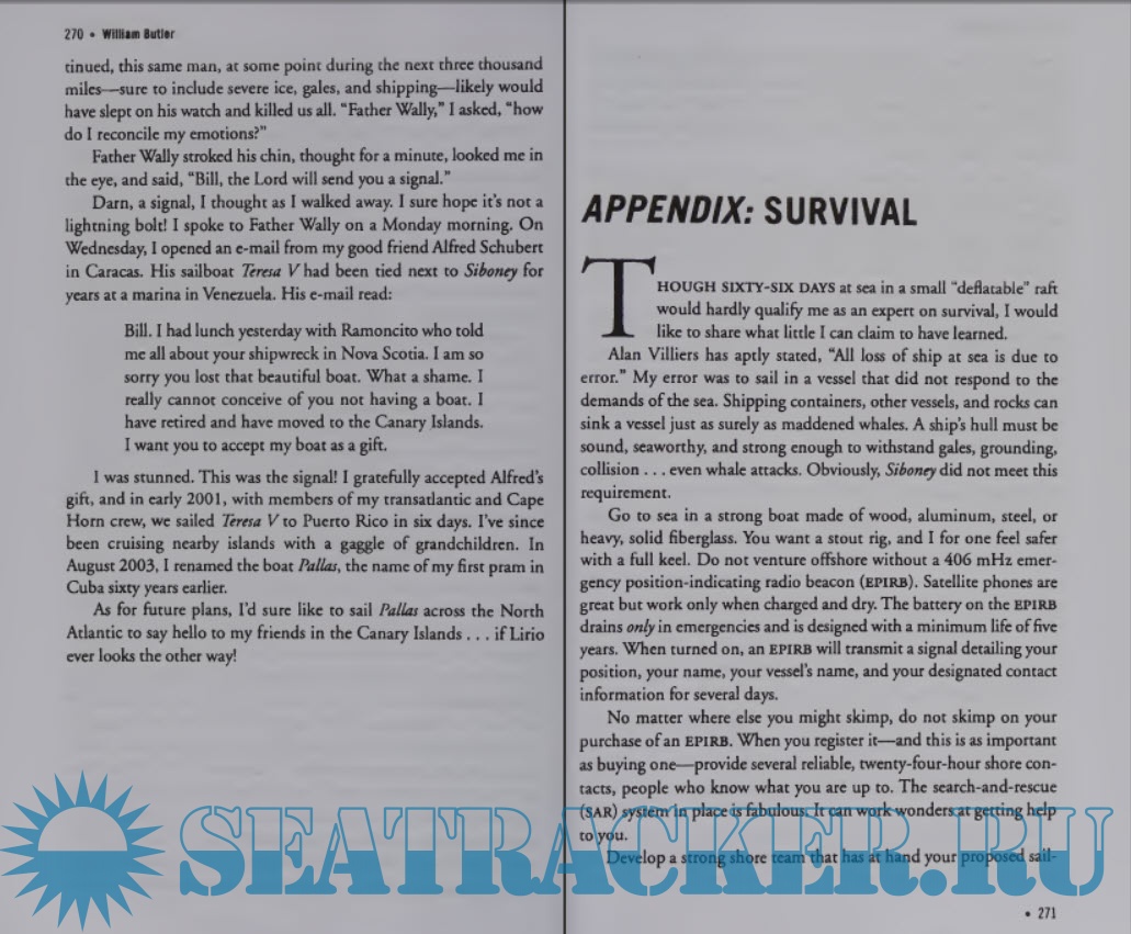 William Butler learned to sail by the age of nine. When he retired in 1989, he had logged more than 34,000 blue-water miles; his total now exceeds 74,000 miles. Bill and Simonne are #15 in the 2004 Outdoor Life Network program "Countdown: Survival 25"—the most inspiring and unbelievable survival stories of the 20th century.