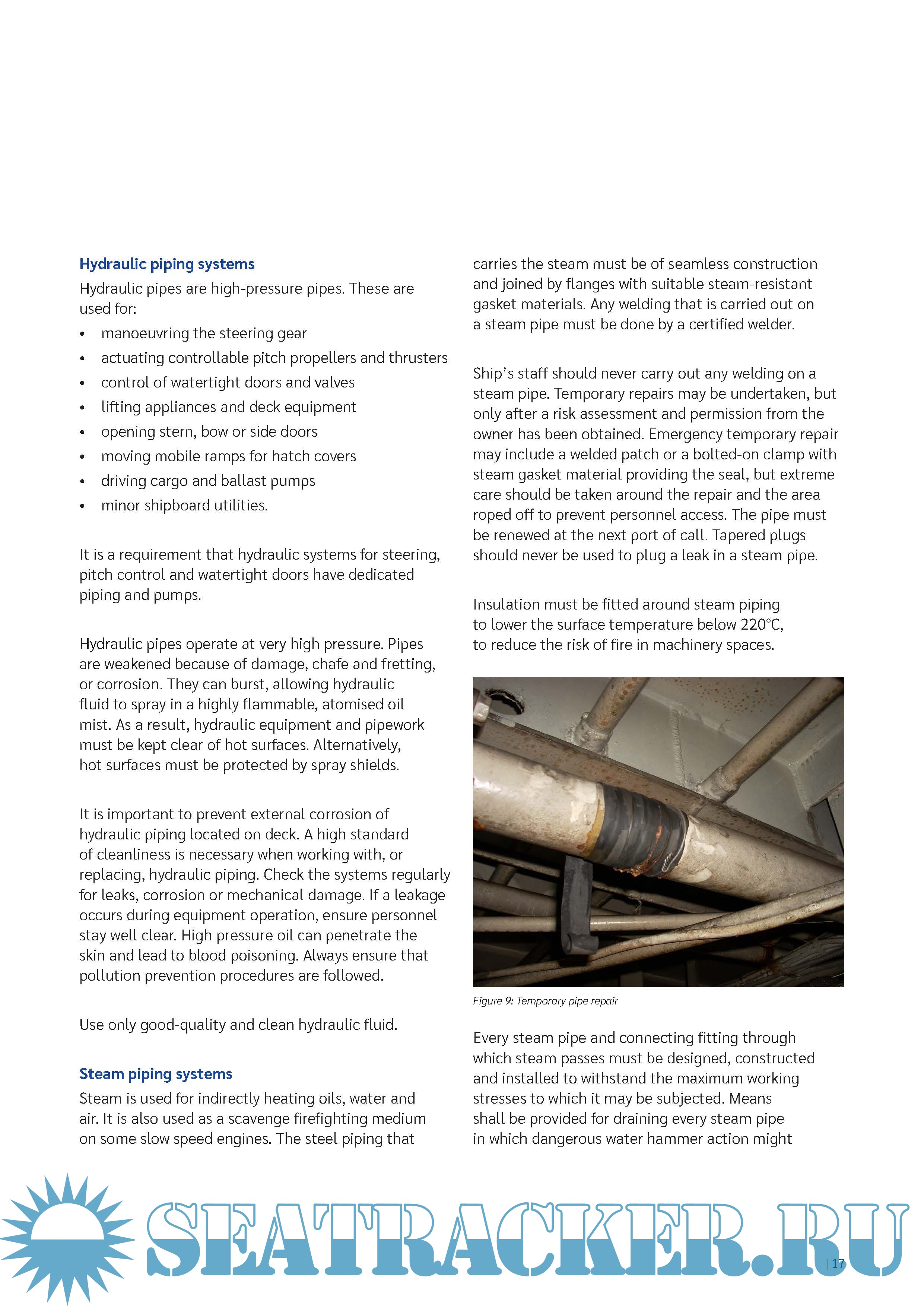on engine, cargo and hydraulic piping, and dealing with piping failures by temporary repairs such as clamps and chemical resins.