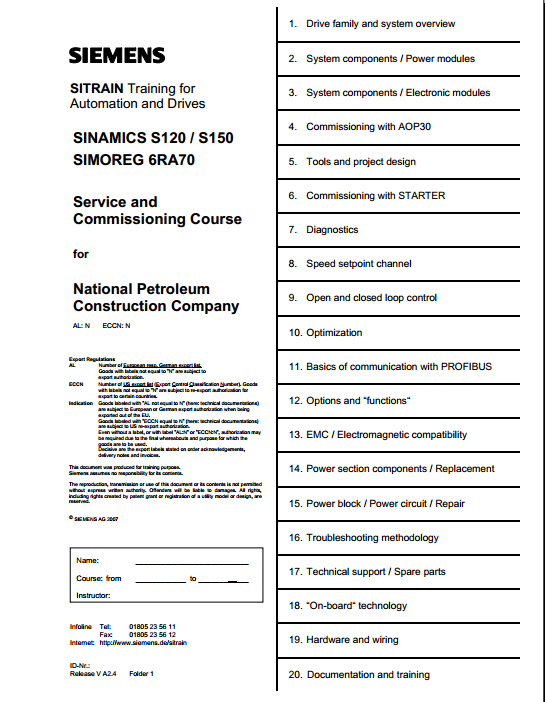 Description: Рабочие материалы к Service and Commissioning Course SINAMICS S120 / S150
