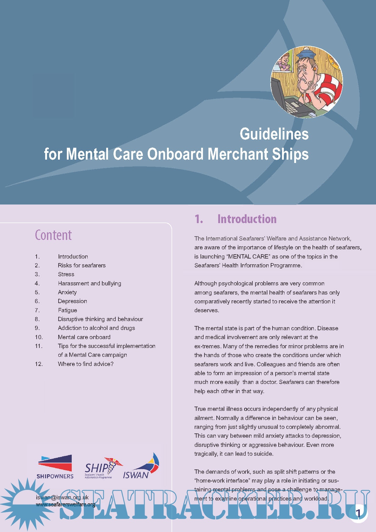 Guidance for companies - Mentally Healthy Ships - provides information on developing and implementing mental health policies on board.