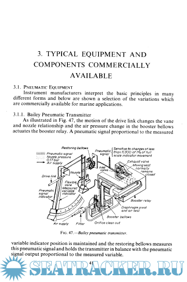 Description: With the advent of steam propulsion machinery in ships, a very primitive form of instrumentation was also introduced. The pressure gauge, the basic principle of which has remained unchanged since it was first used, was one piece of equipment that the early marine engineers could ill afford to ignore. It soon became obvious that human error was inevitable, and to prevent the steam pressure from rising above the design limits, the automatic safety valve for boilers was introduced. This, in conjunction with the centrifugal governor for rotating machinery, was probably the first experience marine engineers had of the value which should be attached to automation equipment.