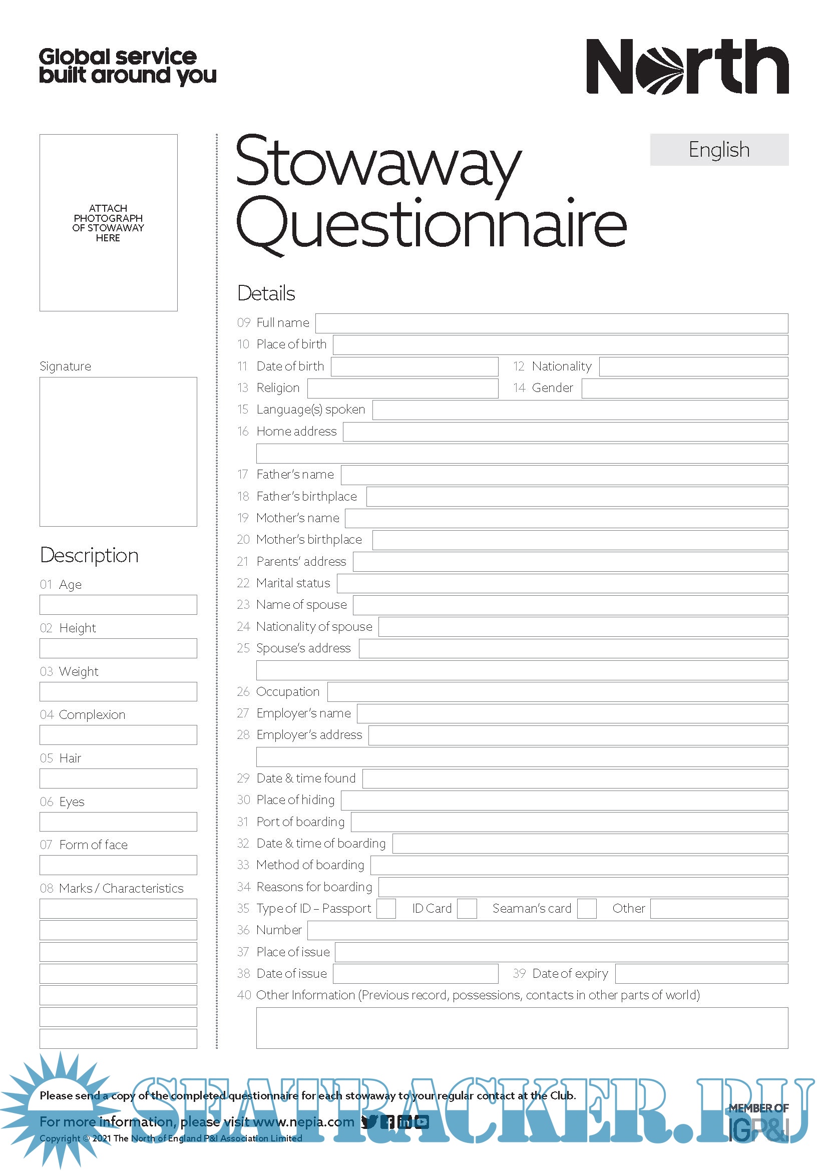 Included questionnaire has been prepared by North P&I to assist in establishing, principally,