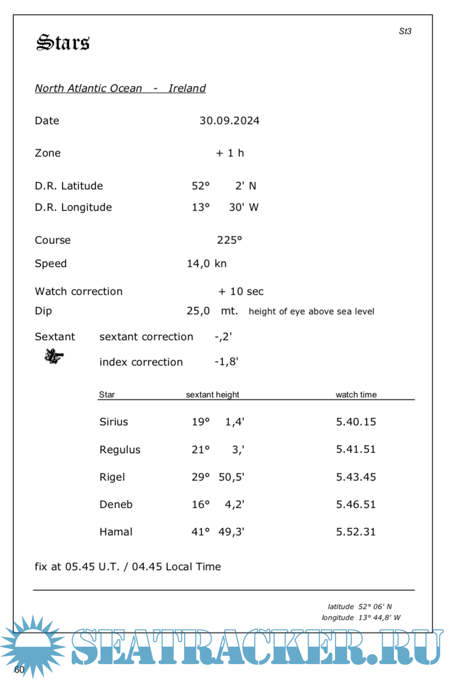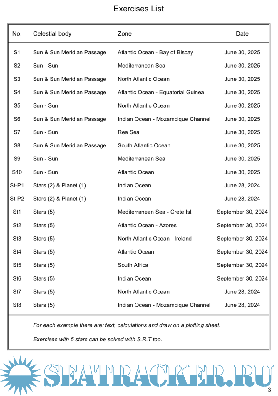 Exercises with 5 stars may be solved with Pub. No. 249 vol. 1 ( Sight Reduction Tables for Air Navigation – selected stars epoch 2020 – year 2024 ).