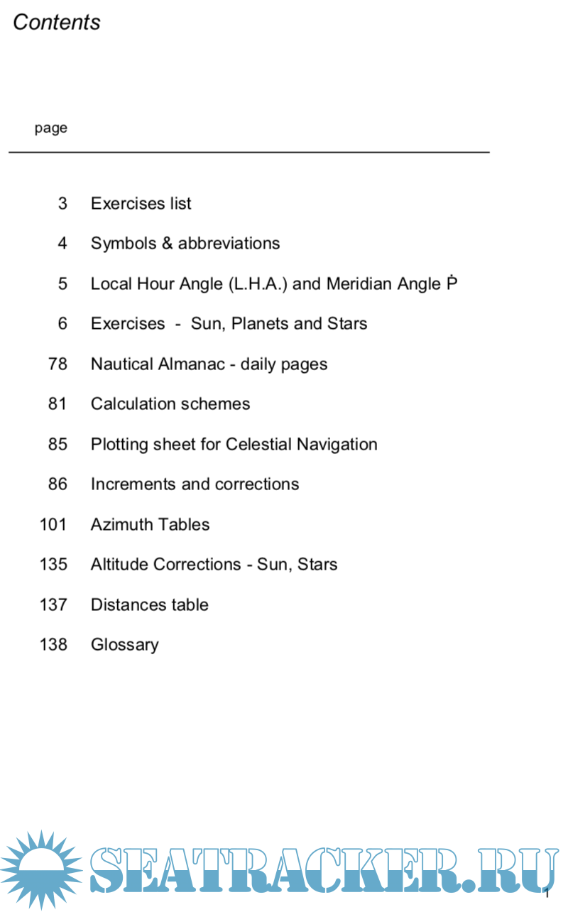 Description: All exercises can be solved with math formulae using a scientific calculator, logarithms, Azimuth Tables or Pub. No. 229 / 249.