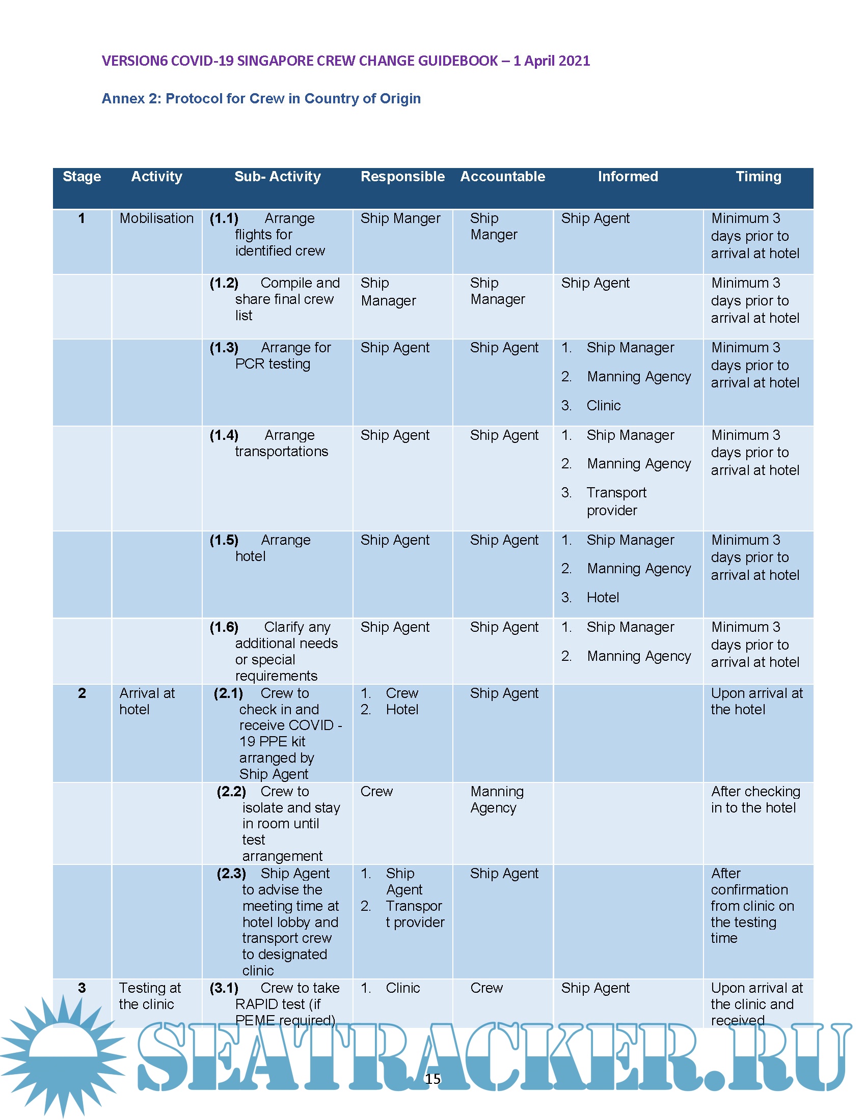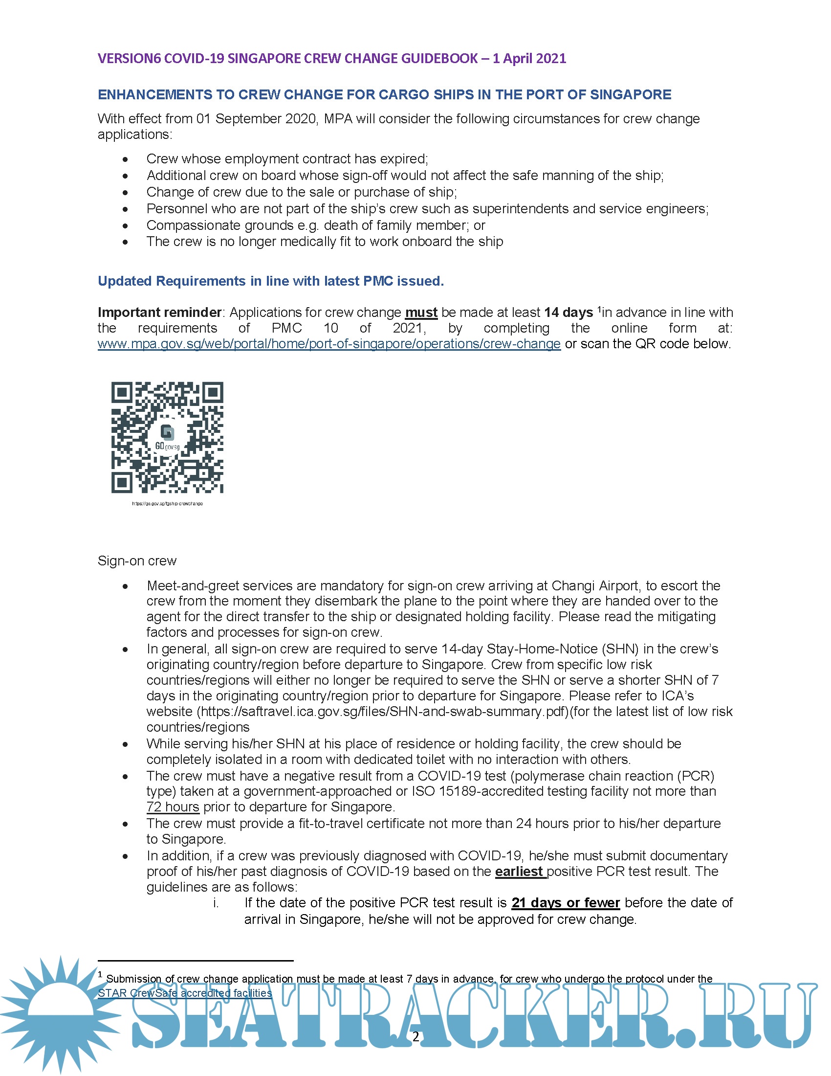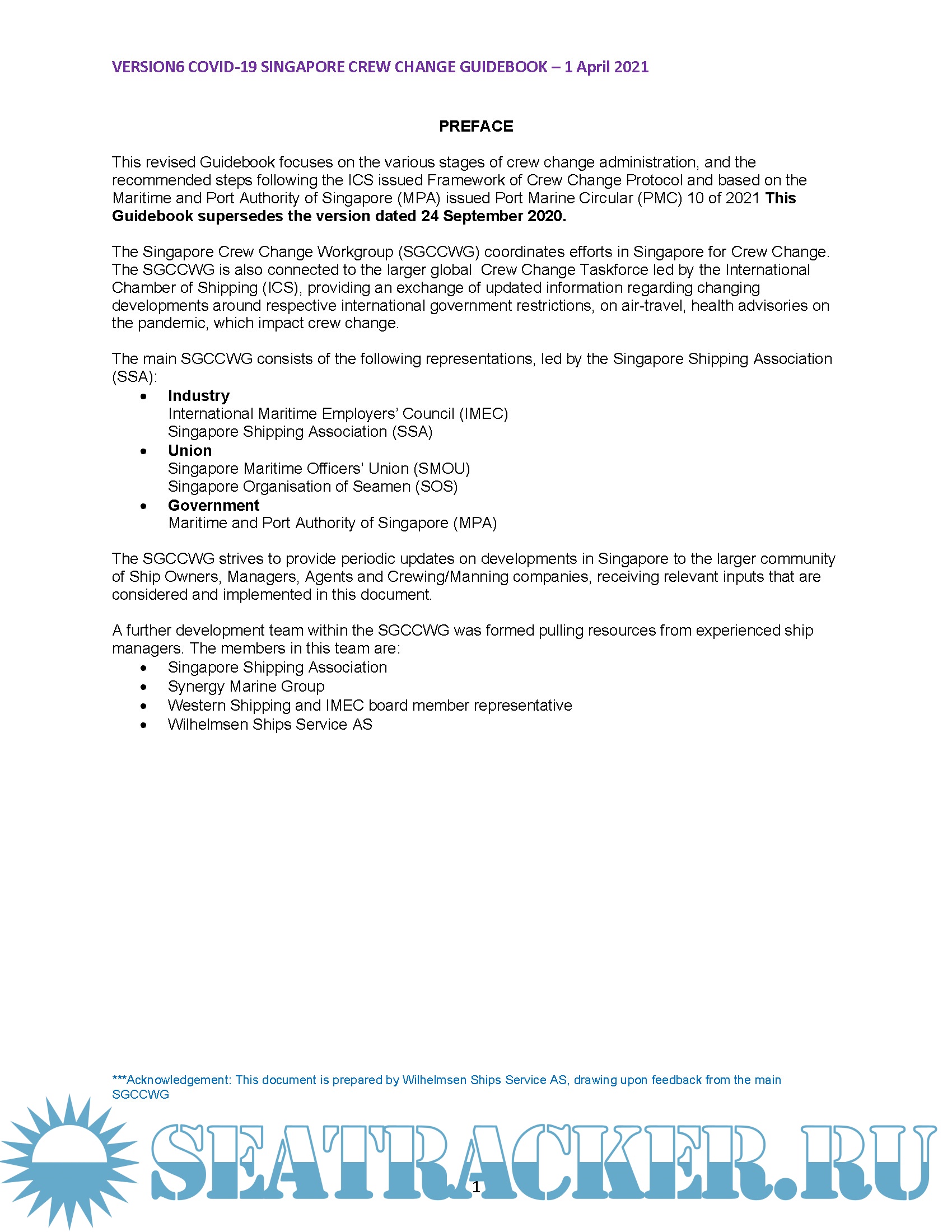 Description: VERSION 6 COVID-19 SINGAPORE CREW CHANGE GUIDEBOOK – DATED 1 April 2021