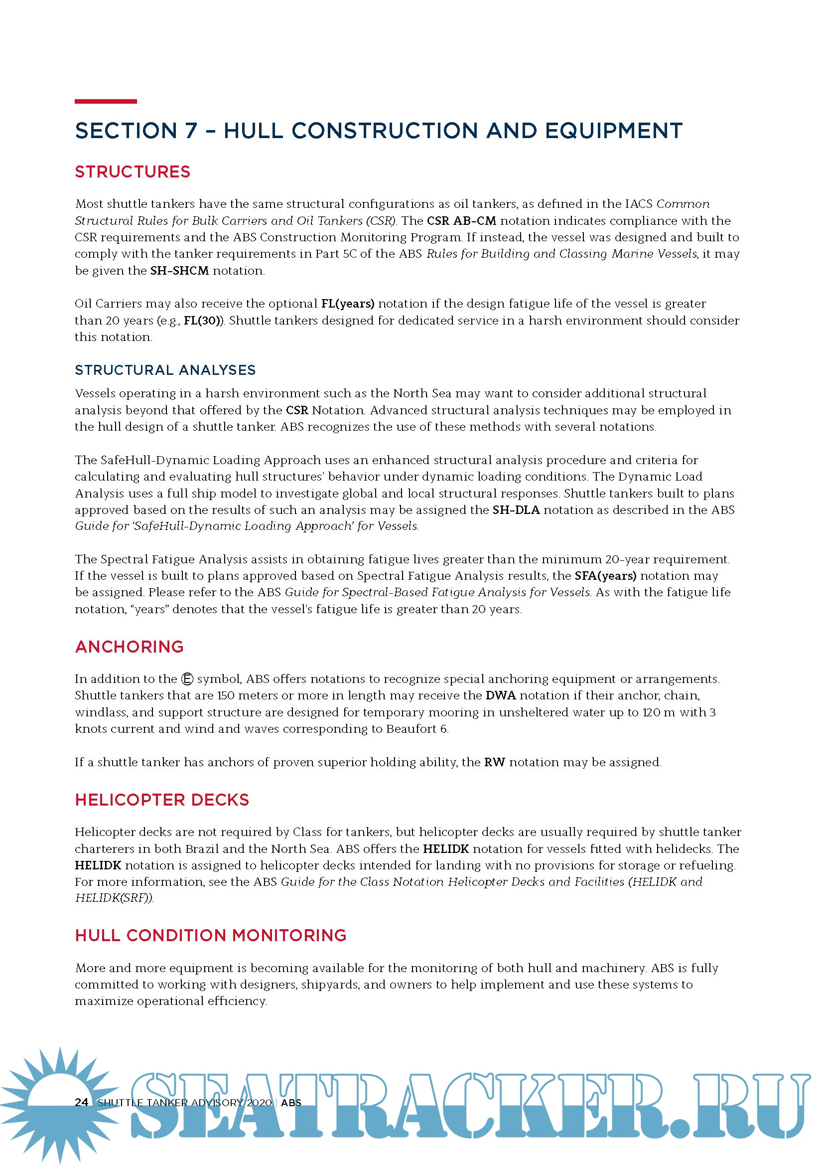 Year: 2020 Language: english Author: ABS Format: PDF Quality: eBook Pages count: 49 Description: Shuttle Tankers are a specialized type of tanker, designed to load cargo from an offshore facility or a larger vessel that is not able to transit to the destination due to draft restrictions. Frequently, they are used as an alternative to pipelines where harsh environments, remote locations or water depth prevent the installation of a pipeline. Station-keeping, cargo handling and communication between the shuttle tanker and offshore loading facility are vital to the safe operation of a shuttle tanker. In recent years, there has been an influx of dual-fuel shuttle tankers specifically utilizing LNG or hybrid propulsion to reduce the carbon footprint of their vessels. This Advisory provides an overview of shuttle tanker design and operation . It discusses regional considerations for shuttle tankers operating in Brazil, the North Sea, and the Gulf of Mexico . It explains how ABS optional notations complement class and statutory requirements to fulfill regional and operational requirements . We also identify requirements that are not covered by our class offerings that may be addressed by newbuild specifications or operational policies . We conclude by discussing new technologies that have already started to impact the shuttle tanker market . Edition October 2020