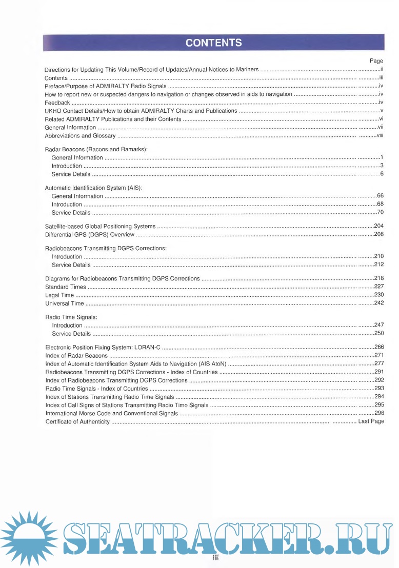 Year: 2021 Language: english Author: UKHO Publisher: UKHO Edition: 2 ISBN: 978-0-70-774-7095 (9780707747095) Format: PDF/DjVu Quality: OCR with errors Pages count: 324 Description: ADMIRALTY List of Radio Signals NP282(2) Volume 2 Part 2 Radio Aids to Navigation, Differential GPS (DGPS), Legal Time, Radio Time Signals and Electronic Position Fixing System for The Americas, Far East and Oceania, 2nd Edition, 2021. Updated to NM Week 4/21 (28/02/21). First updates in NM week 11/21. NP282.2 (2020) First Edition is cancelled.