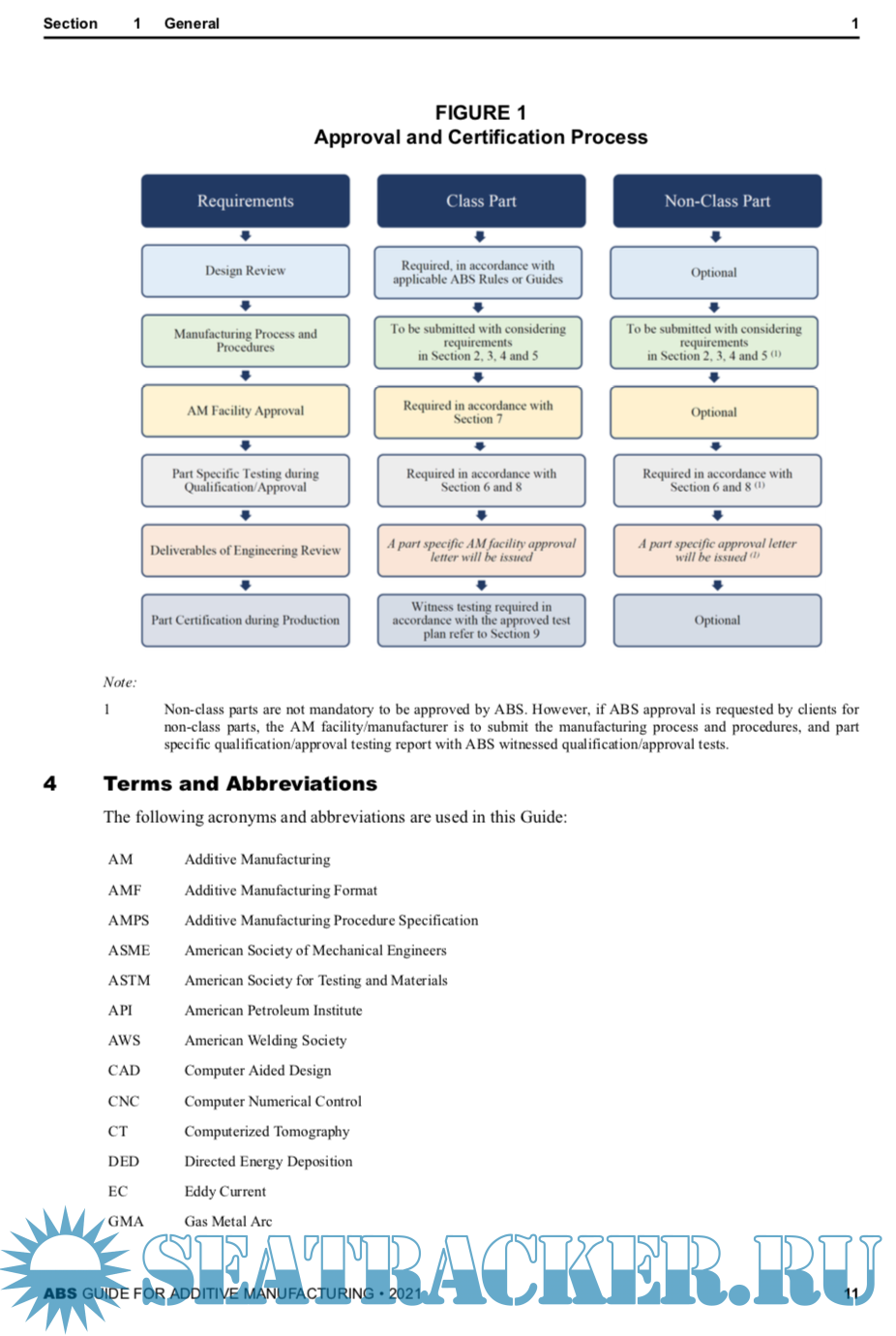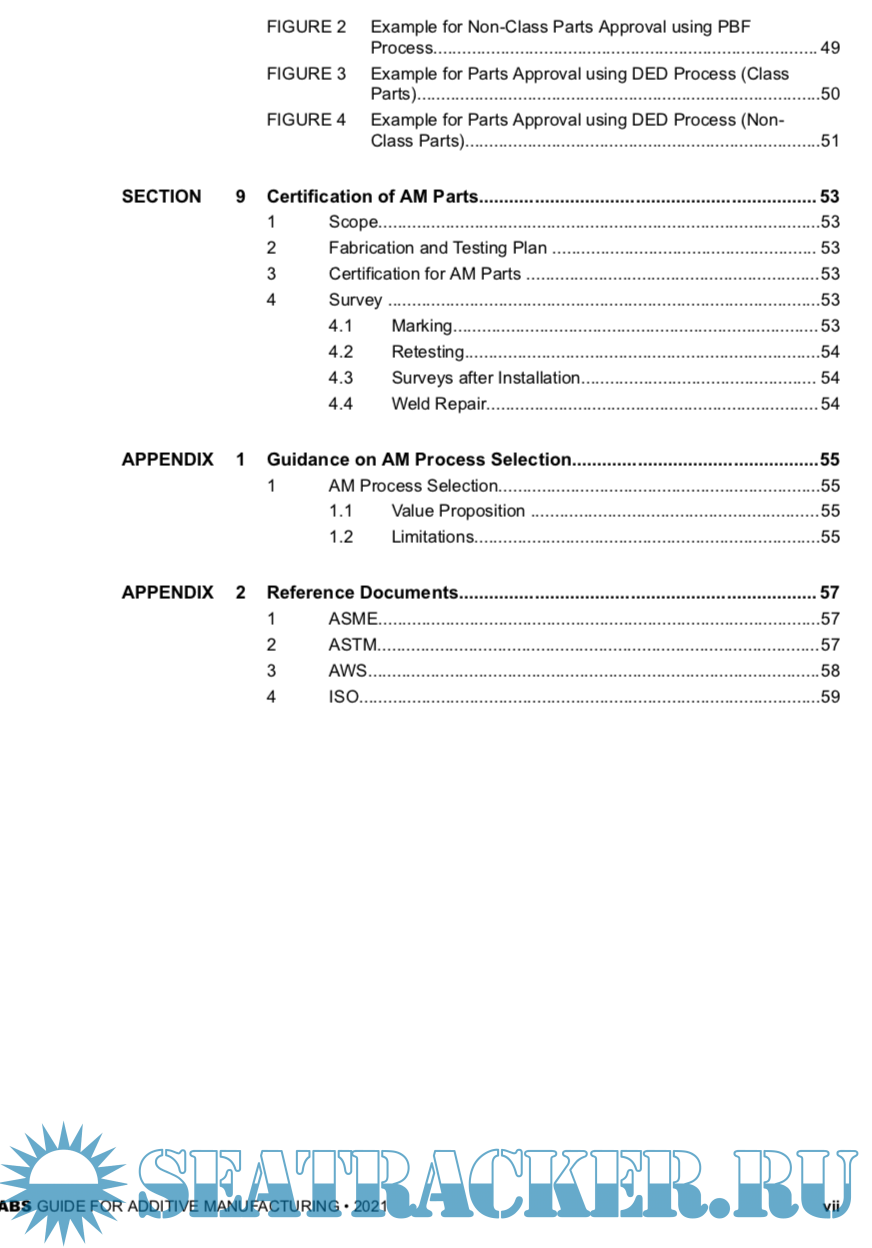 Year: 2021 Language: english Author: ABS Genre: Guide Publisher: American Bureau of Shipping ABS Edition: 1st Format: PDF Quality: eBook Pages count: 59 Description: Additive manufacturing (AM), also known as 3D printing, is a process of fusion/joining materials to make objects from 3D model data, usually layer upon layer, as opposed to subtractive manufacturing methodologies. AM can fabricate 3D parts by creating multiple 2D cross sections and increase the flexibility of designs for complex shapes, some of which were not previously feasible in traditional manufacturing. During the past several decades, academia and industry have performed many studies on the AM process and equipment for various materials, designs, and applications. The early AM processes were established in the 1980s to rapidly produce prototypes to test form, fit, and function. Later, the AM process was applied to molds and fixtures to support traditional manufacturing. The increased uptake of the technology has driven AM technology from prototype to end use, from non- metallic materials to metal materials, and from fabrication of small parts created by desktop machines to large parts created by computer numerical control (CNC) machines or robotic arms. The expanded capability of AM makes it feasible to implement metal AM parts to marine and offshore end use applications. For marine and offshore applications, metal AM may add value in the following areas: i) Manufacturing on demand with shorter lead time in the supply chain (e.g., changing from management of physical parts to management of a computer aided design (CAD) model and manufacture on demand where and when it is needed) ii) Manufacturing end use parts with more flexibility in design (e.g., reducing traditional machining costs for complex shapes, integrating multiple pieces into a single part with reduced installation costs, and optimizing parts using the topology method by adding materials where needed for reduced weight or improved performance) iii) Small batch production (e.g., adding more value for small batch production by avoiding high tooling costs, ability to fabricate obsolete parts, self-sustaining for vessels at sea or in port) iv) Hybrid metal AM process with traditional manufacturing (e.g., applying AM process for repair, applying AM features to traditionally manufactured parts, adding functional or new materials for improved resistance to corrosion, erosion, or wear)