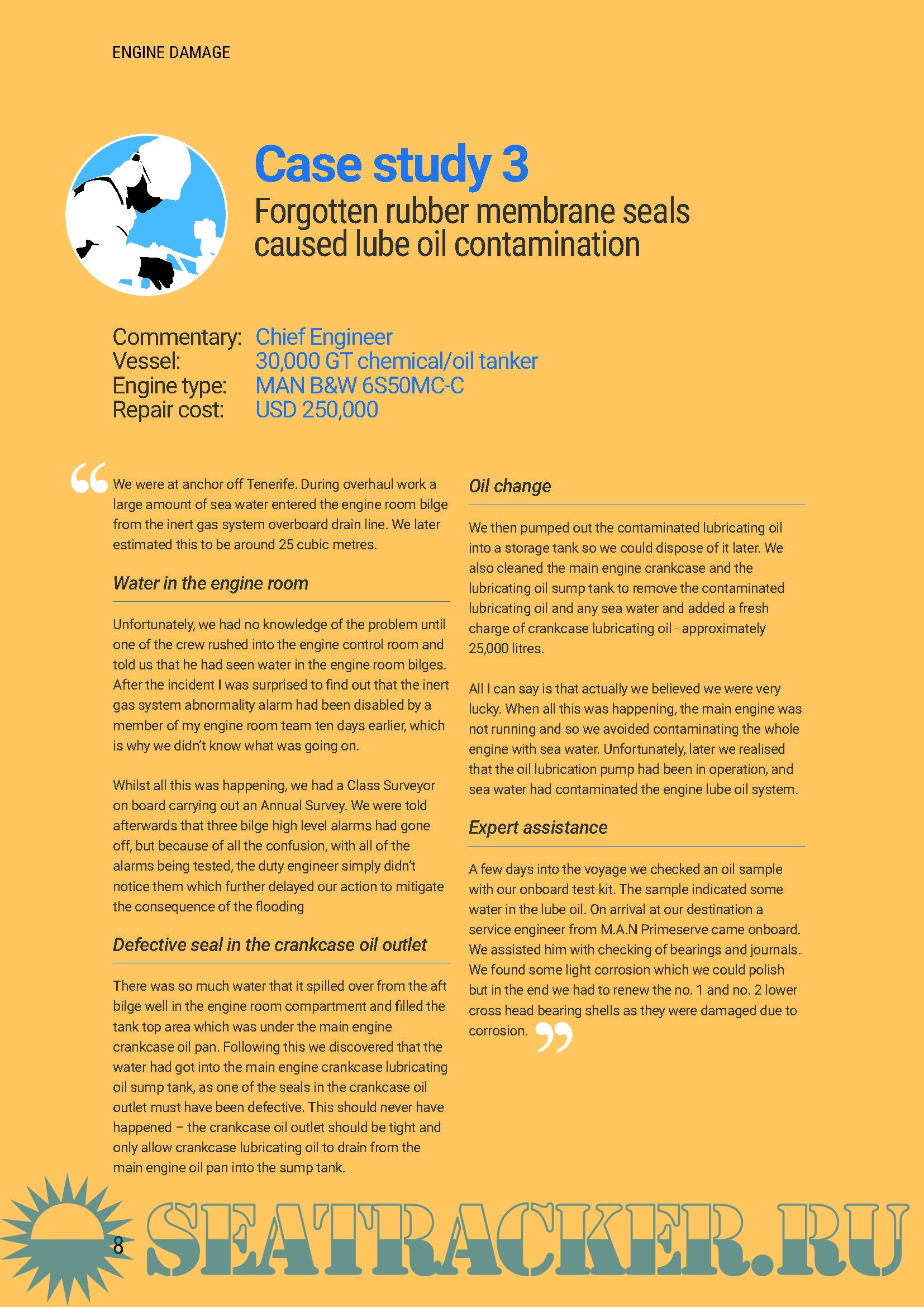 Year: 2021 Language: english Author: the Swedish Club Format: PDF Quality: eBook Pages count: 12 Description: Main engine damage is an expensive category of claims that occurs far too frequently. Statistically, a vessel will suffer between one and two incidences of main engine damage during its lifetime. The case studies in this publication have been chosen to showcase some of the most common causes of engine damage. The cases are taken from real-life situations where an insurance claim has been made.