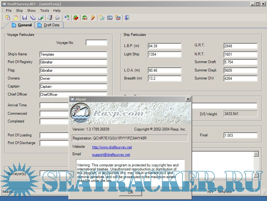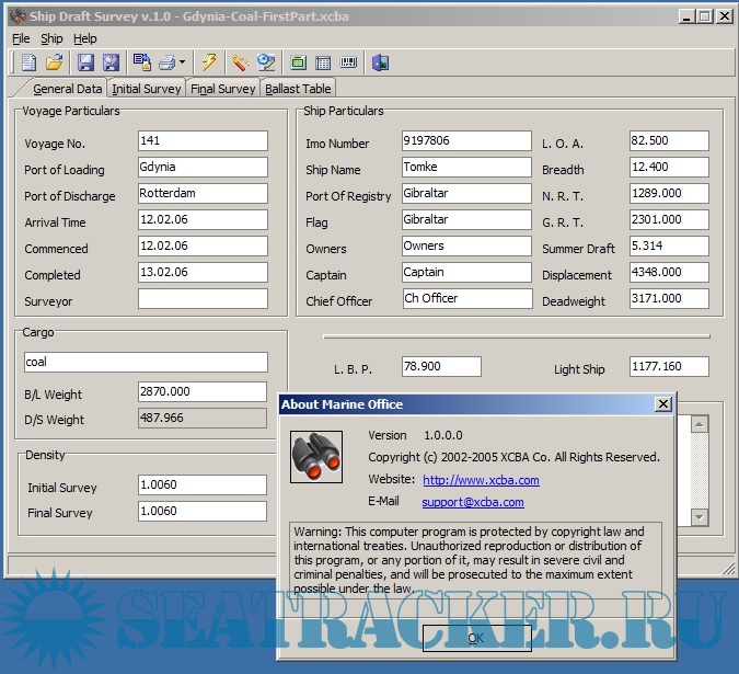 Description: Draft Survey Program is a user-friendly Draught Survey calculation program for Marine Surveyors and Ships' Officers.