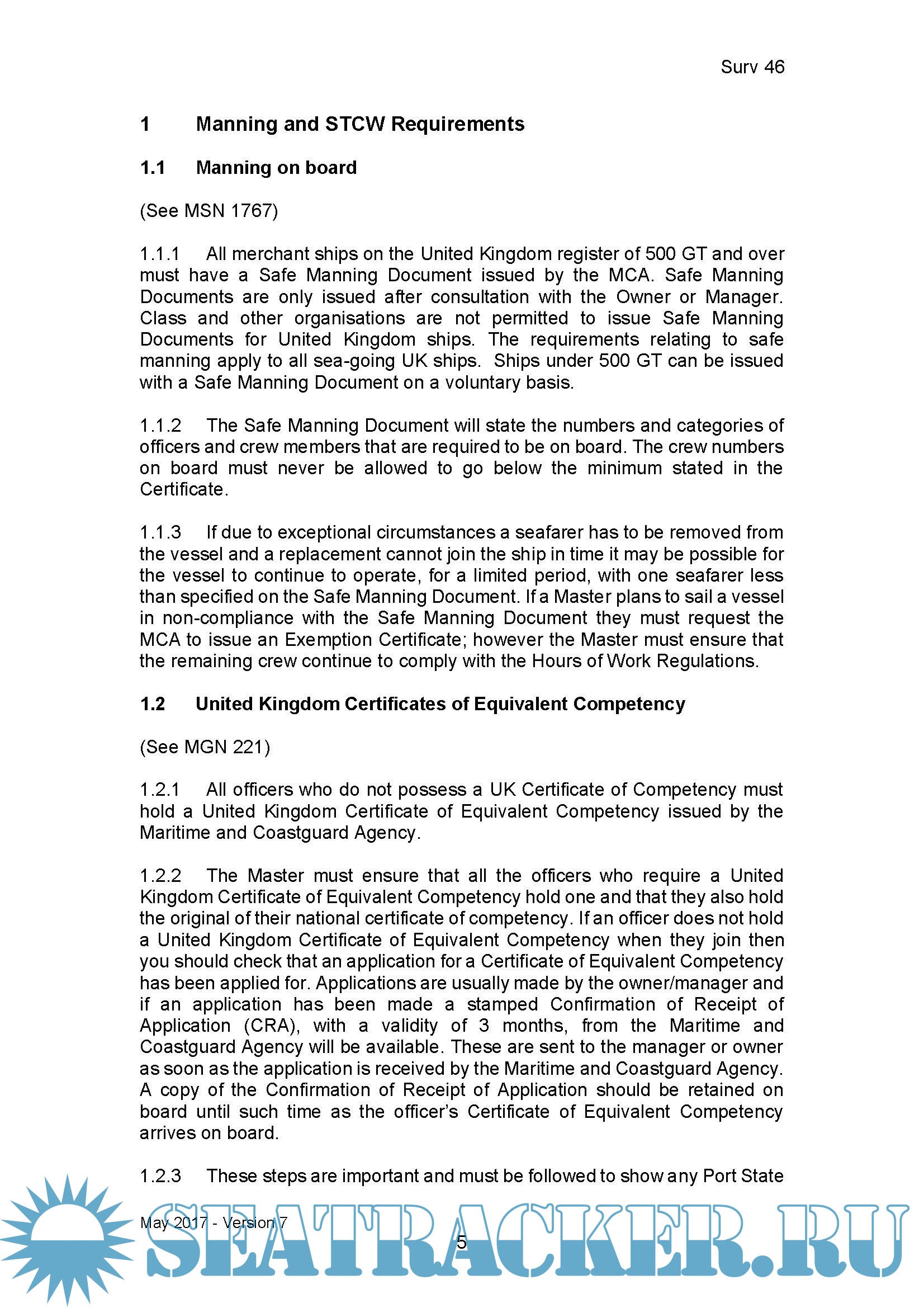 Detailed requirements for operating UK ships can be found in UK Regulations, Merchant Shipping Notices, Guidance to Surveyors and various publications including the Code of Safe Working Practices, MCA SOLAS V publication and Health and Safety leaflets; this detailed information is available on the MCA’s web site.