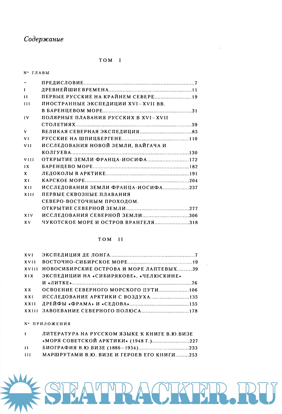Том 2 XVI ЭКСПЕДИЦИЯ ДЕ ЛОНГА XVII ВОСТОЧНО-СИБИРСКОЕ МОРЕ XVIII НОВОСИБИРСКИЕ ОСТРОВА И МОРЕ ЛАПТЕВЫХ XIX ЭКСПЕДИЦИИ НА «СИБИРЯКОВЕ». «ЧЕЛЮСКИНЕ» И «ЛИТКЕ» XX ОСВОЕНИЕ СЕВЕРНОГО МОРСКОГО ПУТИ XXI ИССЛЕДОВАНИЕ АРКТИКИ С ВОЗДУХА XXII ДРЕЙФЫ «ФРАМА» И «СЕДОВА» XXIII ЗАВОЕВАНИЕ СЕВЕРНОГО ПОЛЮСА № ПРИЛОЖЕНИЯ I ЛИТЕРАТУРА НА РУССКОМ ЯЗЫКЕ К КНИГЕ В.Ю.ВИЗЕ «МОРЯ СОВЕТСКОЙ АРКТИКИ» (1948 Г.) II БИОГРАФИЯ В Ю.ВИЗЕ (1886-1954) III МАРШРУТАМИ В.Ю. ВИЗЕ И ГЕРОЕВ ЕГО КНИГИ.