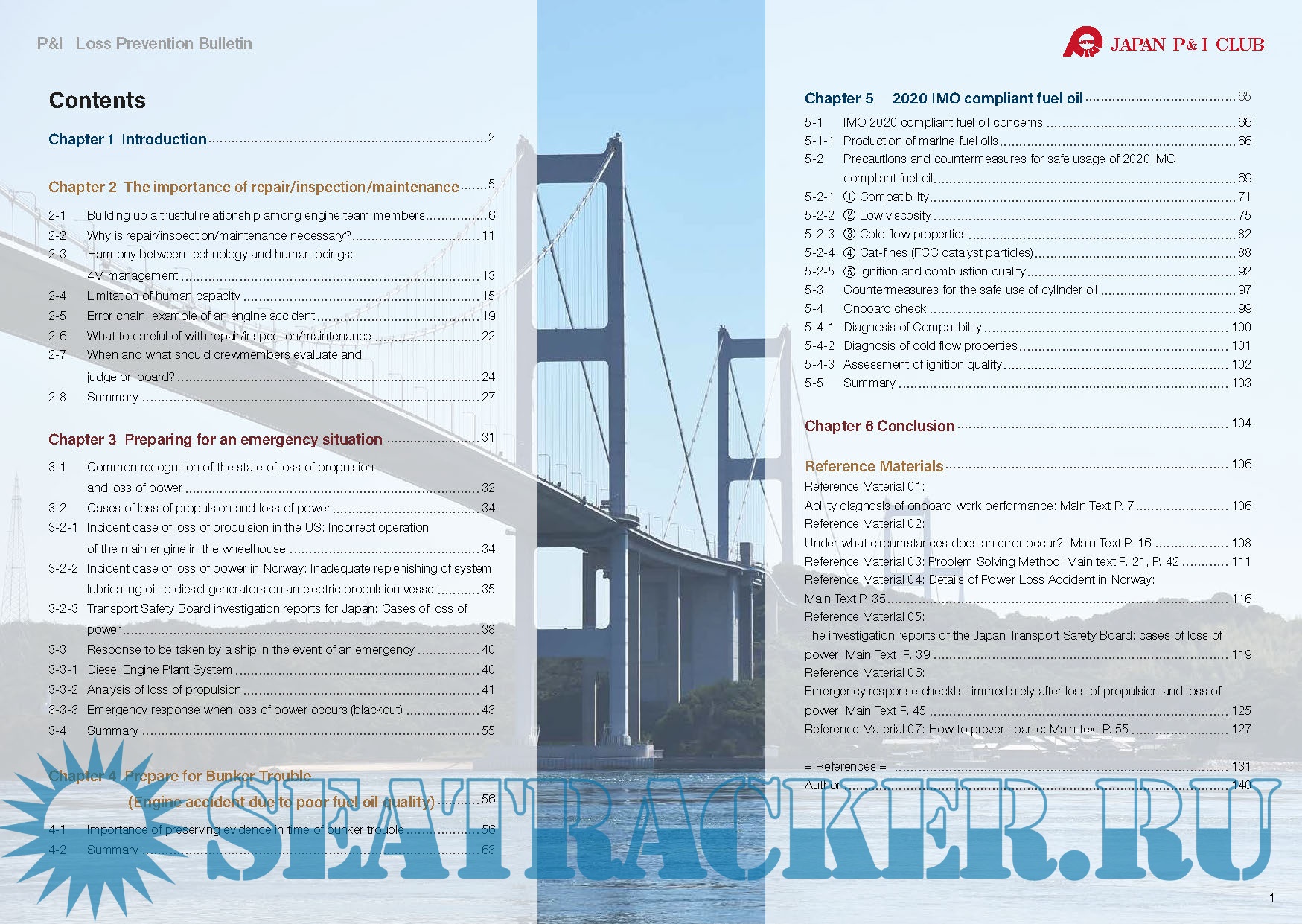 Year: 2020 Language: english Author: Japan P&I Club Format: PDF Quality: eBook Pages count: 140 Description: In this guide “Tips for Effective Engine Management and Maintenance” we have included all of the key elements taken from our open seminars that were held in 2019. When focusing on the root causes of a ship’s machinery failure and incidents, it appears that most cases are the result of management problems regarding oils (fuel oil and lubricating oil) and inspection/repair/maintenance work that was not properly performed. However, the engineers and their crewmembers in the engine department tend to pursue the cause as to whether there is any abnormality regarding mechanical/ electrical engineering integrity and soundness in design/manufacturing, such as whether the engine machinery/equipment itself is working and running normally or not. Regrettably, it is often the case that reoccurrence preventive measures, such as those mentioned above, tend to get neglected or forgotten.