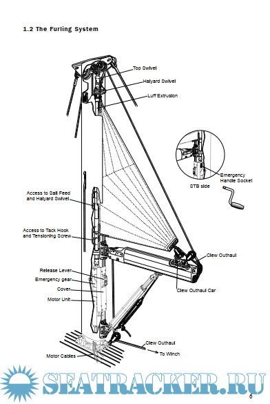 Seldén manual furling system.