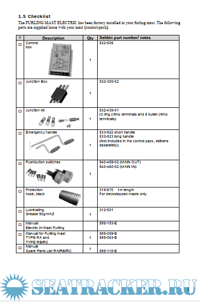 for Furling Mast TYPE RB Mk II/RC Mk II” (595-063-E). The appropriate manual is included in your