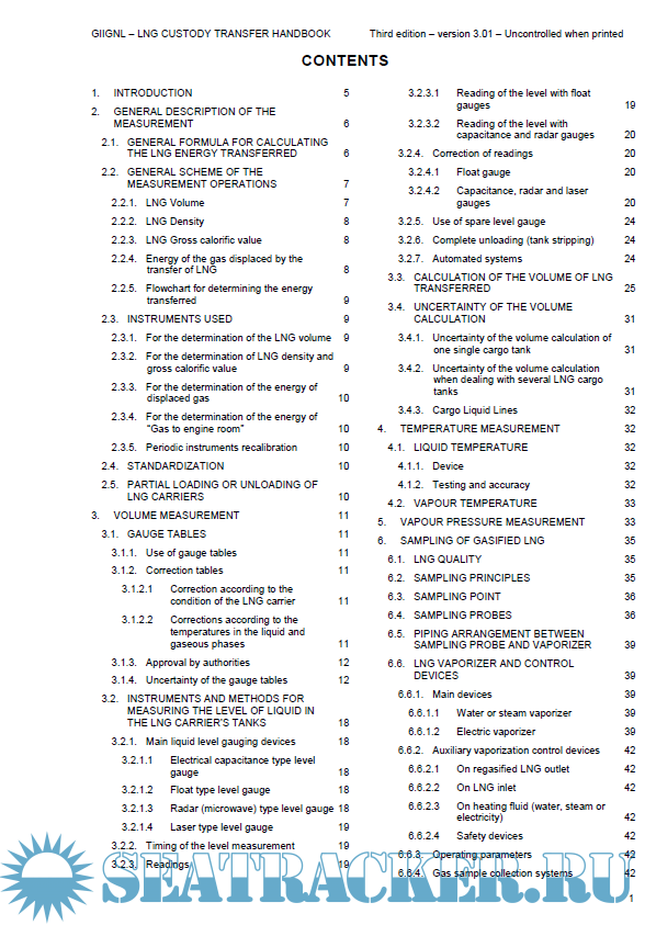 Year: 2011 Language: english Author: GIIGNL Genre: Textbook Format: PDF Quality: eBook Number of pages: 99 Description: This third (2011) edition of the GIIGNL LNG Custody Transfer Handbook reflects GIIGNL’s understanding of best current practice at the time of publication. The purpose of this handbook is to serve as a reference manual to assist readers to understand the procedures and equipment available to and used by the members of GIIGNL* to determine the energy quantity of LNG transferred between LNG ships and LNG terminals. It is neither a standard nor a specification. This handbook is not intended to provide the reader with a detailed LNG ship-shore custody transfer procedure as such, but sets out the practical issues and requirements to guide and facilitate a skilled operator team to work out a suitable procedure for a specific LNG ship-shore custody transfer application. Although this LNG Custody Transfer Handbook may contain much useful information, it is not specifically intended to work out procedures for ship-to-ship LNG transfer, custody transfer for LNG carriers with type C cargo tanks (IGC Code) or overland LNG custody transfer operations involving LNG trucks or trains. No proprietary procedure, nor particular manufacture of equipment, is recommended or implied suitable for any specific purpose in this handbook. Readers should ensure that they are in possession of the latest information, standards and specifications for any procedures and equipment they intend to employ. GIIGNL, and any of its members, disclaims any direct or indirect liability as to information contained in this document for any industrial, commercial or other use whatsoever.