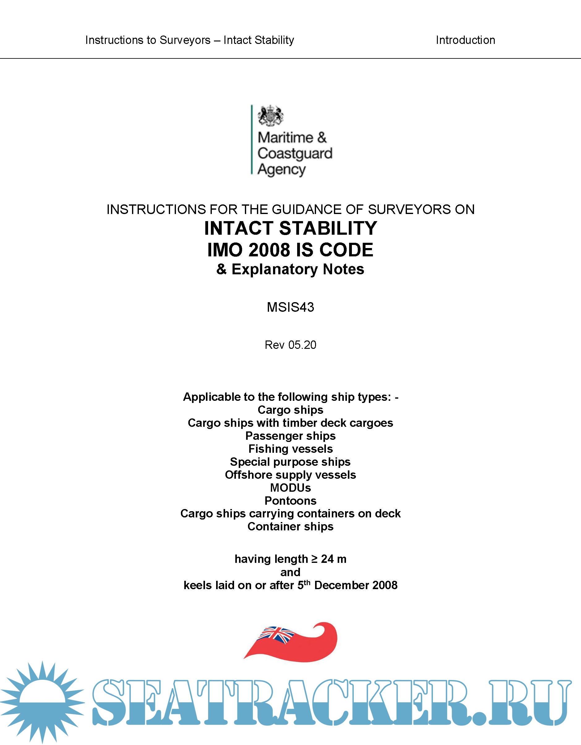 Description: INSTRUCTIONS FOR THE GUIDANCE OF SURVEYORS ON INTACT STABILITY IMO 2008 IS CODE