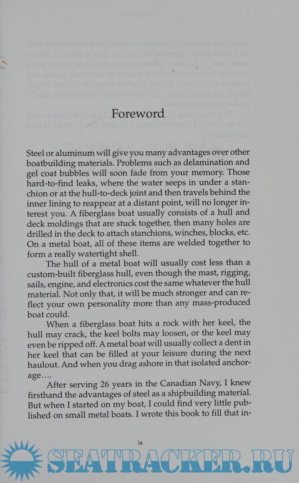 It is a very useful little book to anyone involved in building or buying a metal boat or even for anyone who currently owns a metal boat and may be thinking of making improvements to it. The book provides a simple and very useful guide to the subject. It is well illustrated and covers almost every imaginable aspect of metal boats.