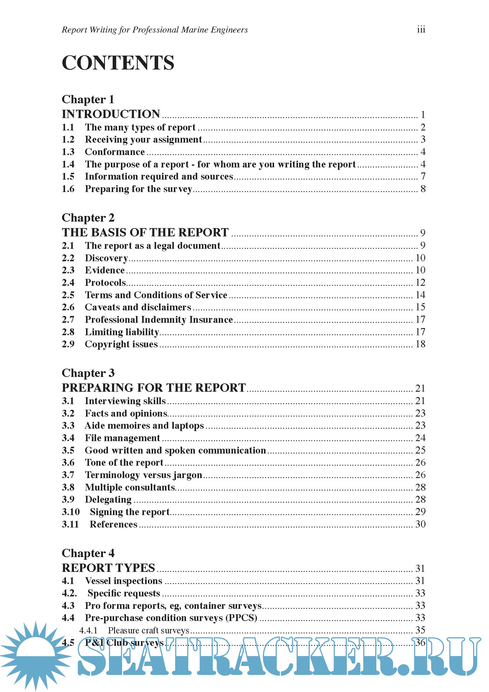 Description: This is a practical guide for marine engineers on completion of the wide range of marine reports. It discusses conducting a survey and gathering information, conforming with legal requirements, writing a complete and effective report, text formatting and presentation of diagrams and photographs.