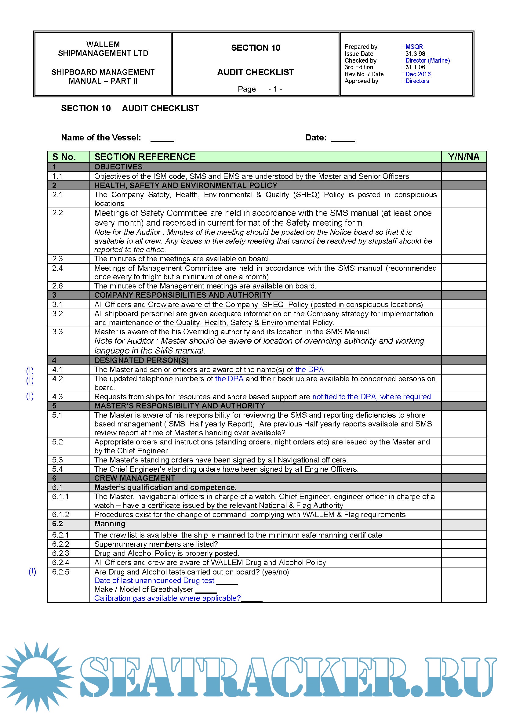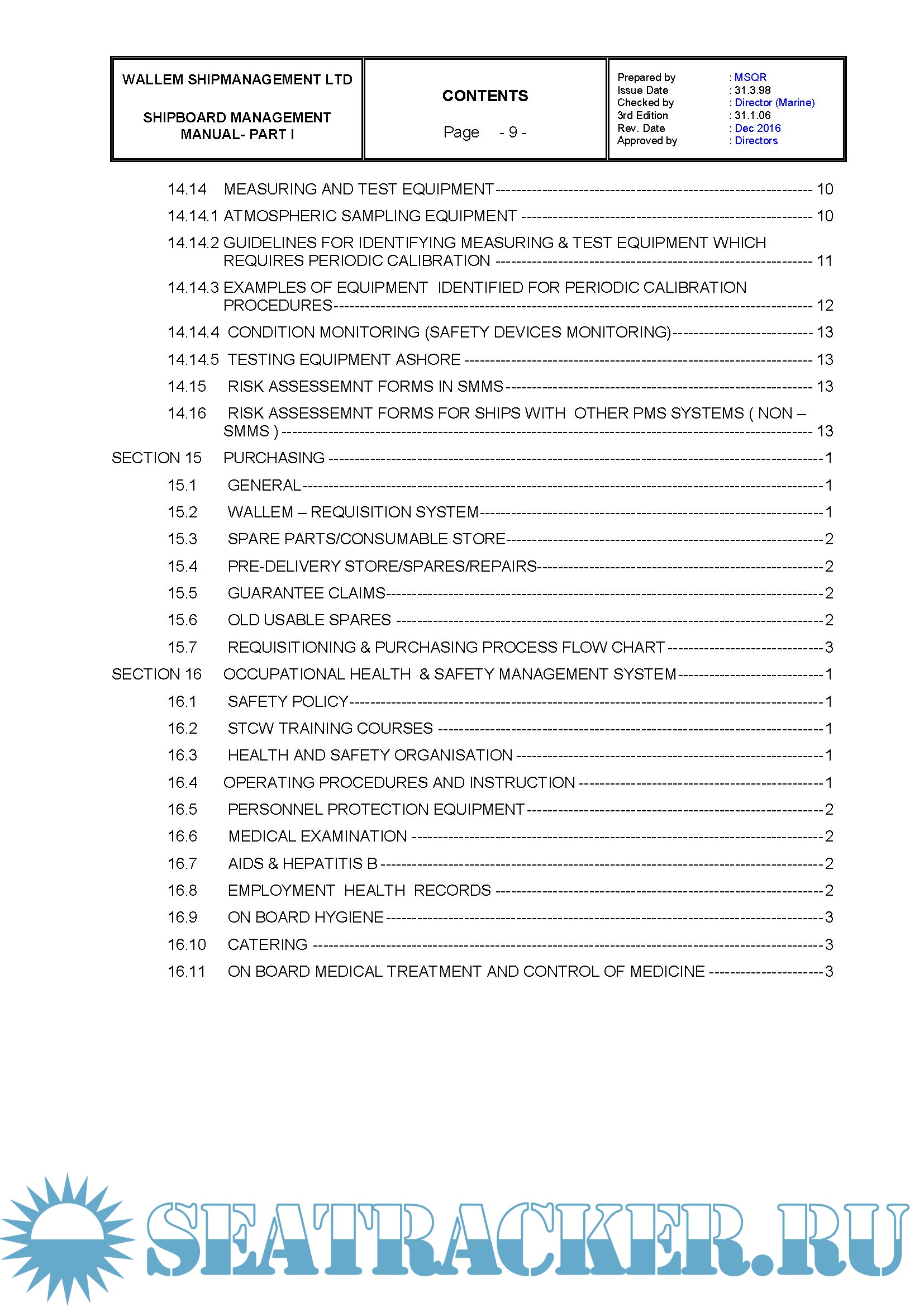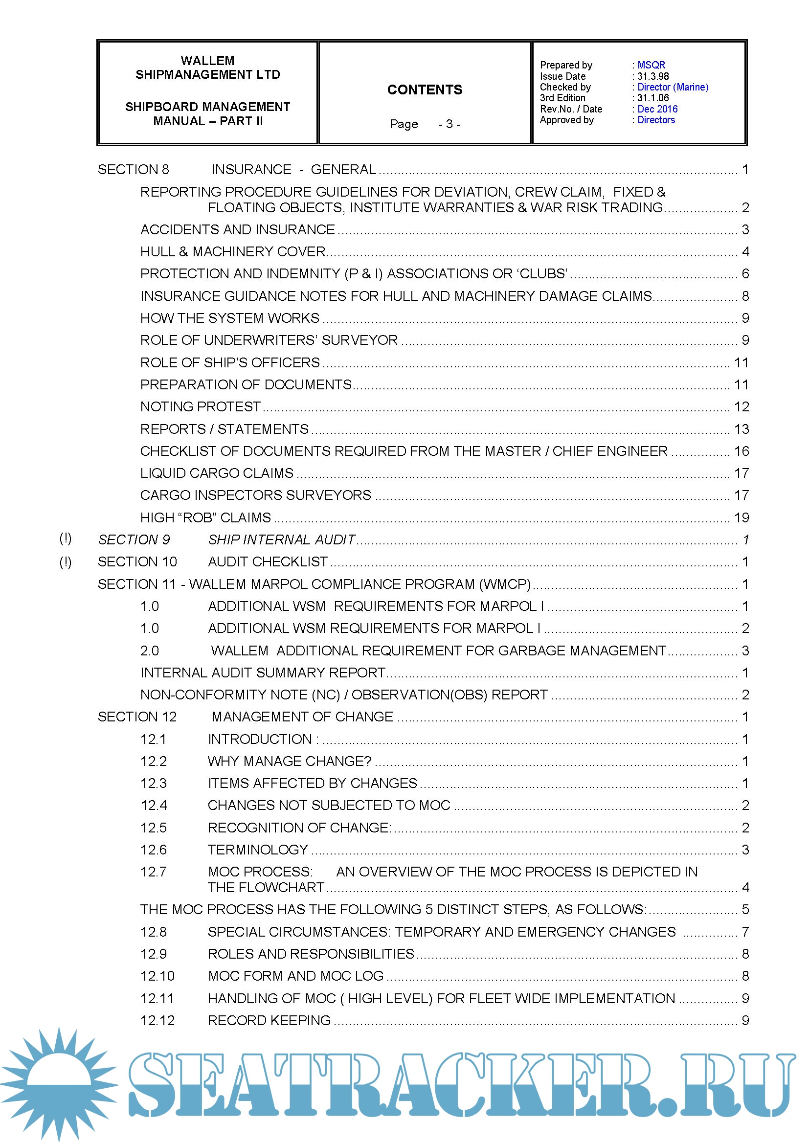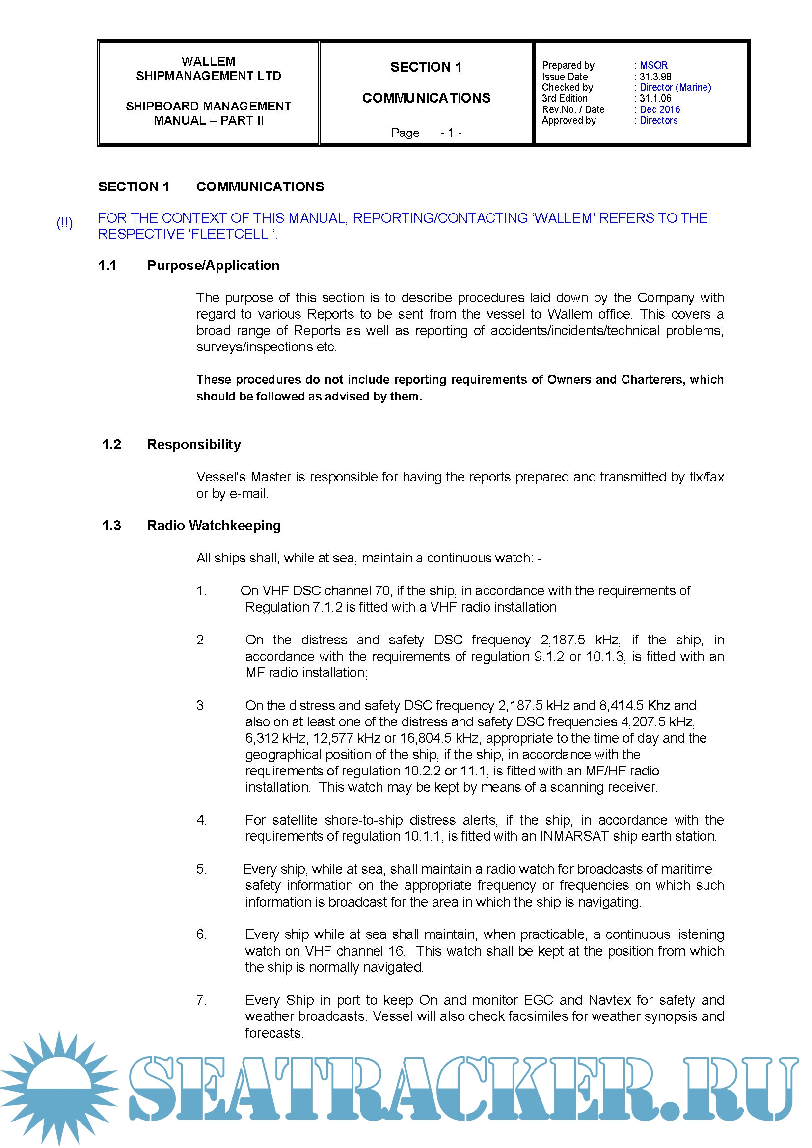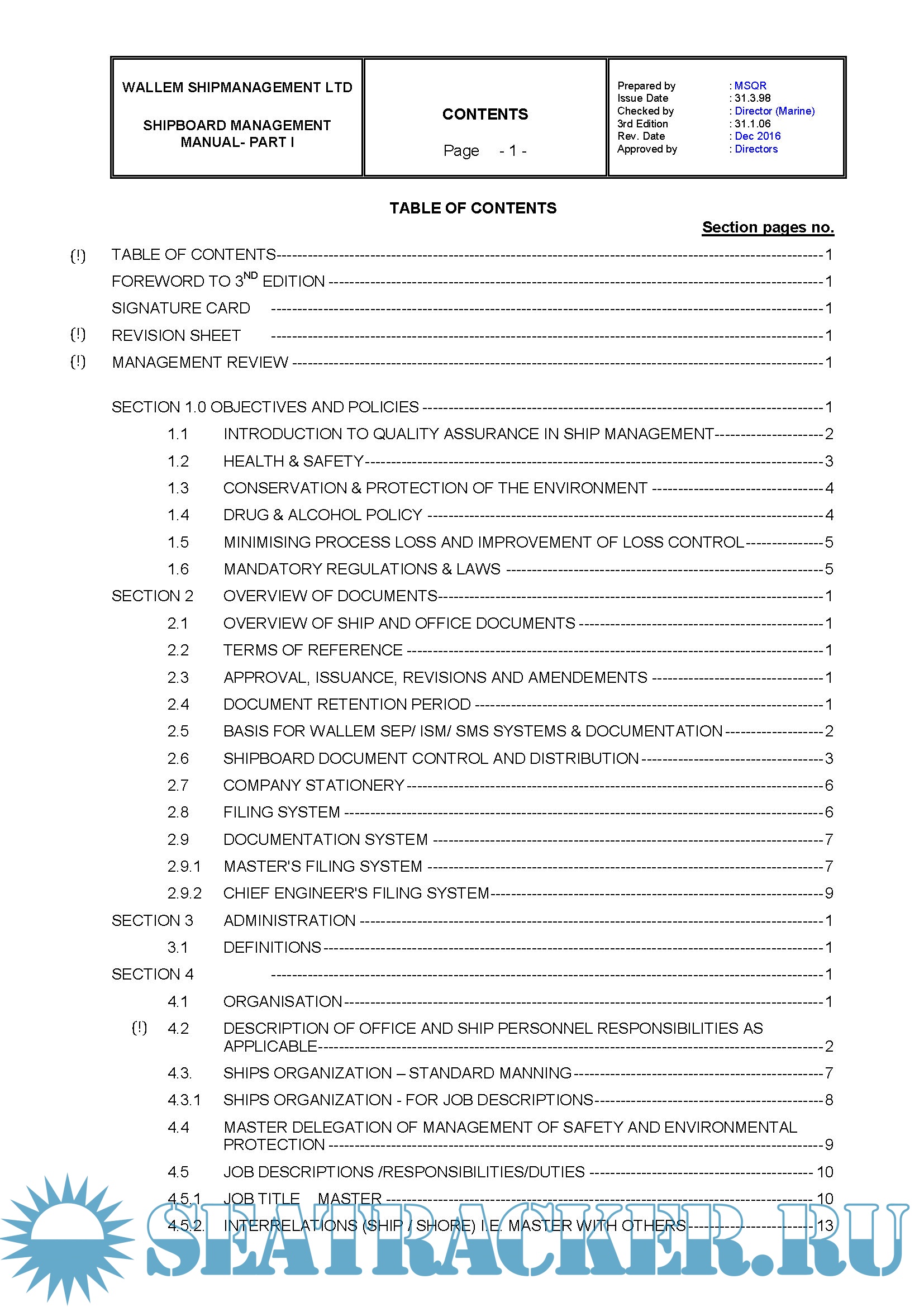 Description: Wallem ShipManagement Ltd Shipboard Management Manual Parts 1 & 2