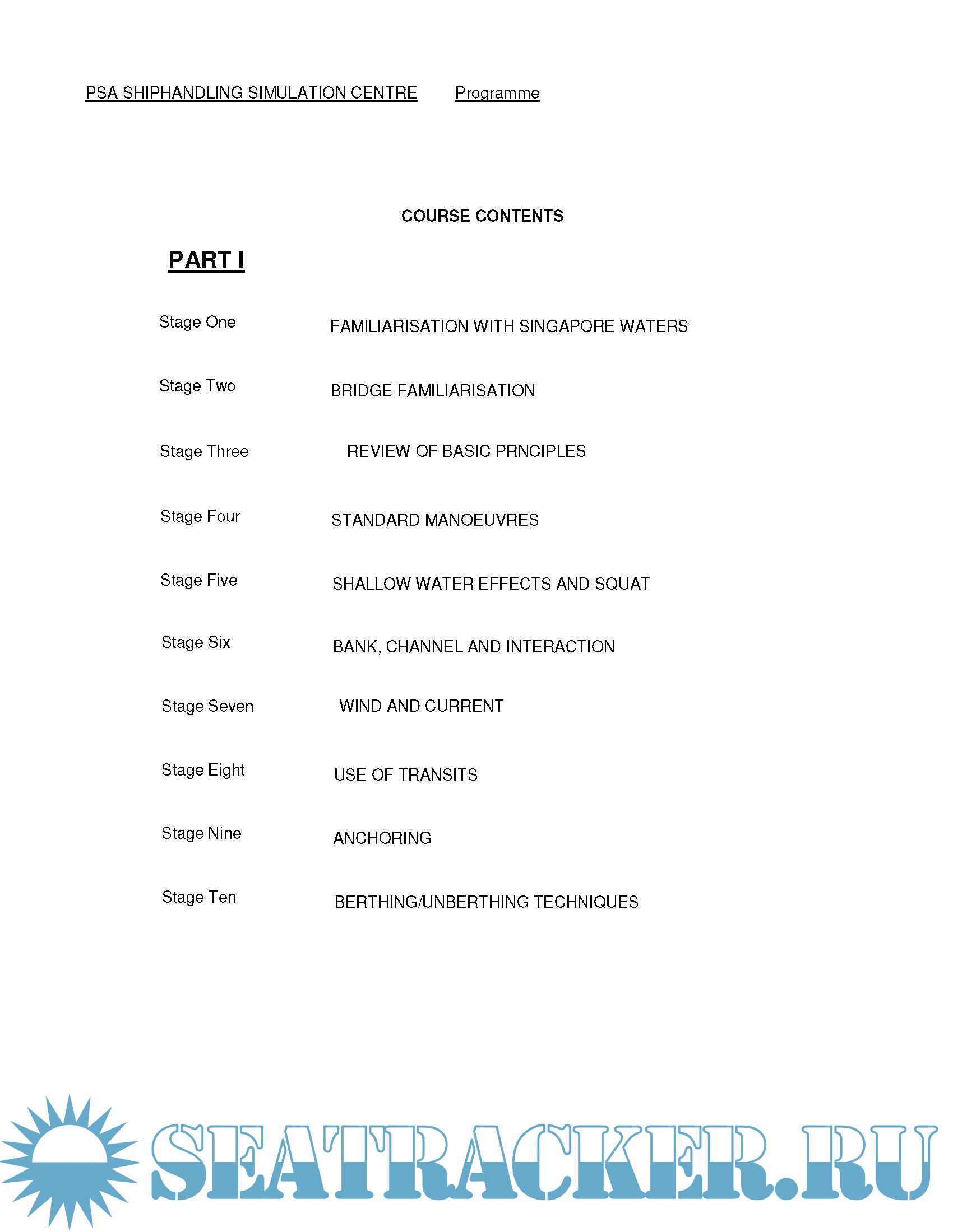 Description: Handout for Singapore PSA Course "PRACTICAL PILOTAGE ATTACHMENT and SHIPHANDLING SIMULATION TRAINING PROGRAMME"
