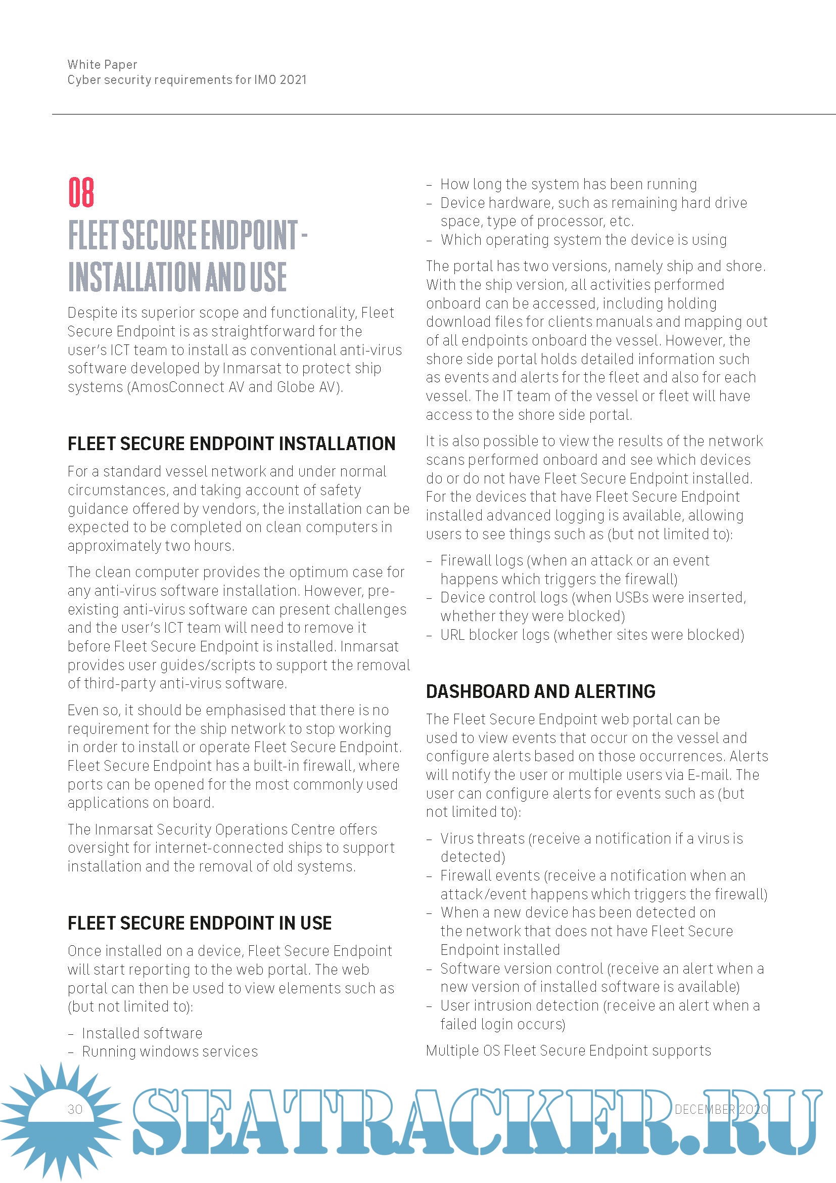 Year: 2021 Language: english Author: INMARSAT Format: PDF Quality: eBook Pages count: 40 Description: Developments in connectivity and the transfer of data in greater volumes between ship and shore continue to bring significant gains for passenger experience, operations, fleet management efficiency and crew welfare, but they also increase the vulnerability of critical systems onboard vessels to cyber attacks. The following report offers ship owners and managers guidance covering their responsibilities under the new IMO regime.