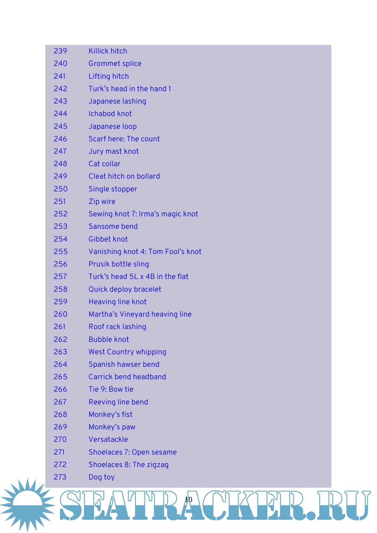 You won't escape this book without learning something, and you won't put it down without picking up an interesting fact or useful technique. Give it a month and you'll be a knot tying fanatic; give it a year and you'll be a knotting supremo!