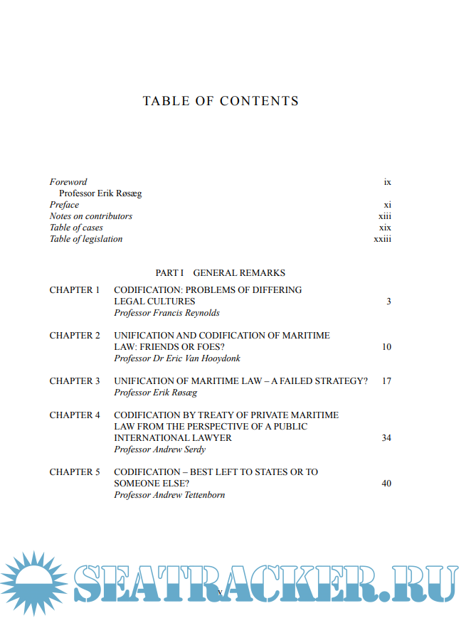 The book is divided into four parts which represent different views on the main topic. Part I gathers chapters dedicated to different aspects and methods of unification of maritime law on a global scale, as well as several specific issues of maritime law from the regulatory point of view. Part II of the book consists of those papers that centre around the issue of transport of goods. Part III is dedicated to codifications of carriage of passengers, cruise law and leisure navigation. Finally, Part IV addresses national codifications of maritime law.