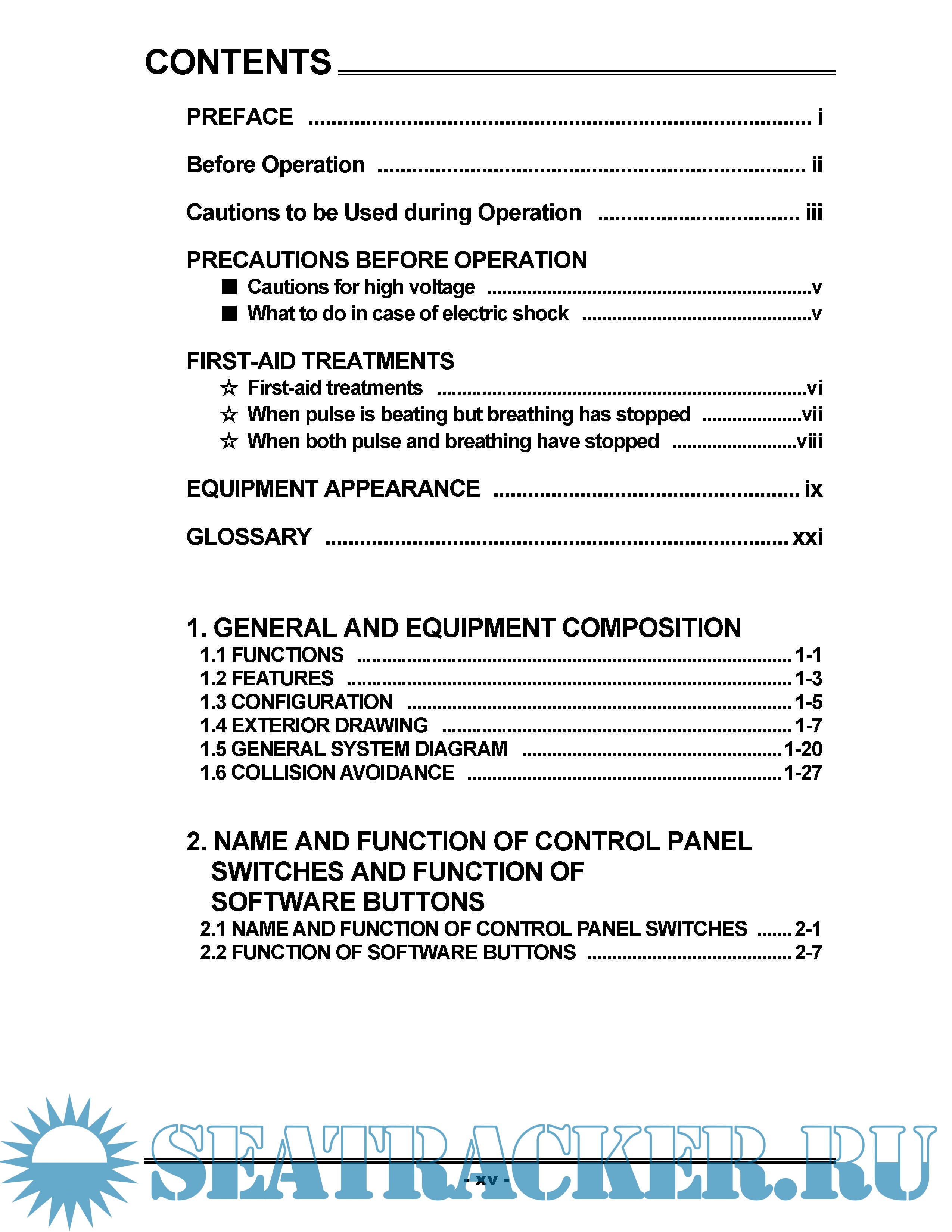 Year: 200X Language: english Author: JRC Genre: Manual Publisher: JRC Format: PDF Quality: Scanned pages Pages count: 404 Description: This equipment is a marine radar equipment designed to obtain safe operation of marine ships. This equipment consists of a radar signal transmitter-receiver unit, a CRT display unit and a scanner unit as its main units. • Before operating the equipment, be sure to read this instruction manual carefully for correct operation. • Maintain this instruction manual so that operators can refer to it at any time. • Refer to this manual when any inconvenience or defect occur.