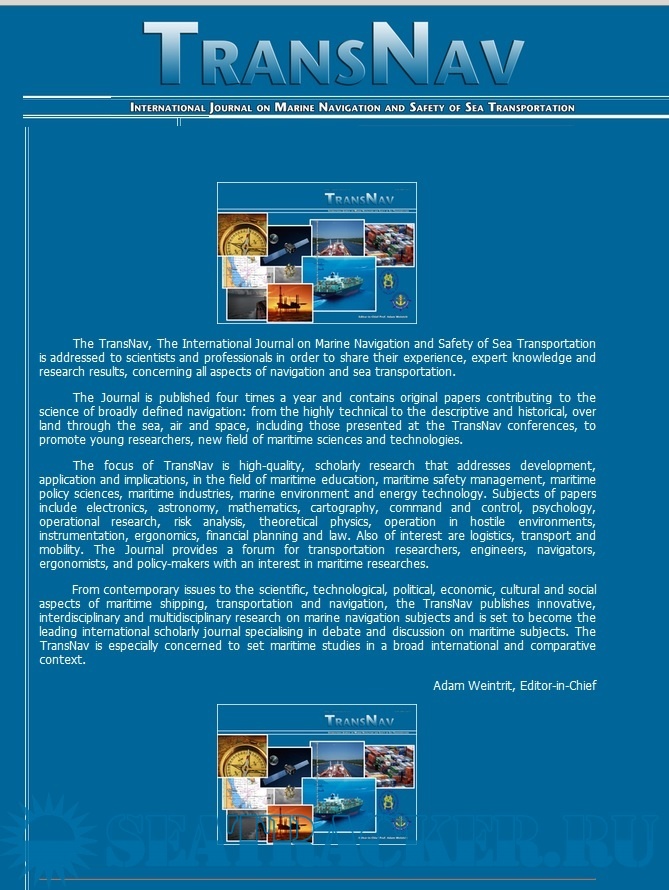 Description: The TransNav, The International Journal on Marine Navigation and Safety of Sea Transportation is addressed to scientists and professionals in order to share their experience, expert knowledge and research results, concerning all aspects of navigation and sea transportation.