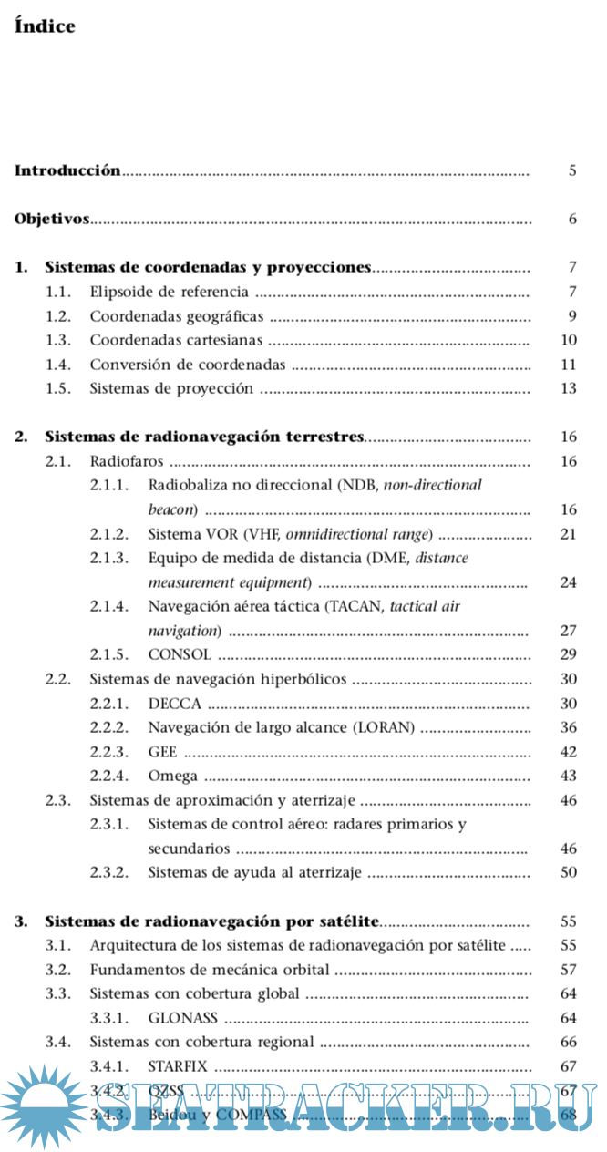 Year: 201? Language: spanish Author: José López Vicario Genre: Textbook Publisher: UOC Format: PDF Quality: eBook Pages count: 80 Description: Radio navigation systems are positioning systems that estimate the position of a target or user terminal using radio signals. These systems began to be developed at the beginning of the 20th century and are still very useful in many applications. These systems are classified into terrestrial radionavigation systems and satellite radionavigation systems, depending on whether ground stations are used to send / receive radio signals, as in the first case, or whether satellite constellations are used, as in the second case. Radio navigation systems are introduced in this module. First, however, the most commonly used coordinate systems and projection systems in radionavigation are described. Once this is done, the best-known terrestrial radio navigation systems are described, classifying them into two groups according to their operating principle: radio beacons and hyperbolic systems. Subsequently, another type of systems used in airports is introduced to manage the approach control of the aircraft to them and to provide assistance to the pilots in landing tasks. Finally, the module concludes by presenting the satellite radionavigation systems. Specifically, a general description of the most important satellite radionavigation systems is provided, also introducing their basic concepts and some notions of orbital mechanics. Los sistemas de radionavegación son sistemas de posicionamiento que estiman la posición de un blanco o terminal de usuario utilizando señales radio. Estos sistemas empezaron a desarrollarse al inicio del siglo XX y siguen siendo aún de gran utilidad en multitud de aplicaciones. Estos sistemas se clasifican en sistemas de radionavegación terrestres y sistemas de radionavegación por satélite, dependiendo de si se usan estaciones terrestres para enviar/recibir las señales radio, como en el primer caso, o si se recurre a constelaciones de saté- lites, como en el segundo caso. En este módulo se presentan los sistemas de radionavegación. En primer lu- gar, no obstante, se describen los sistemas de coordenadas y los sistemas de proyección más utilizados en radionavegación. Hecho esto, se pasa a describir los sistemas de radionavegación terrestres más conocidos, clasificándolos en dos grupos según su principio de funcionamiento: los radiofaros y los siste- mas hiperbólicos. Seguidamente, se introduce otro tipo de sistemas utilizados en aeropuertos para gestionar el control de aproximación de las aeronaves a los mismos y para proporcionar ayuda a los pilotos en las tareas de aterriza- je. Finalmente, el módulo concluye presentando los sistemas de radionavega- ción por satélite. Concretamente se proporciona una descripción general de los sistemas de radionavegación por satélite más importantes, introduciendo además los conceptos básicos de los mismos y algunas nociones de mecánica orbital.