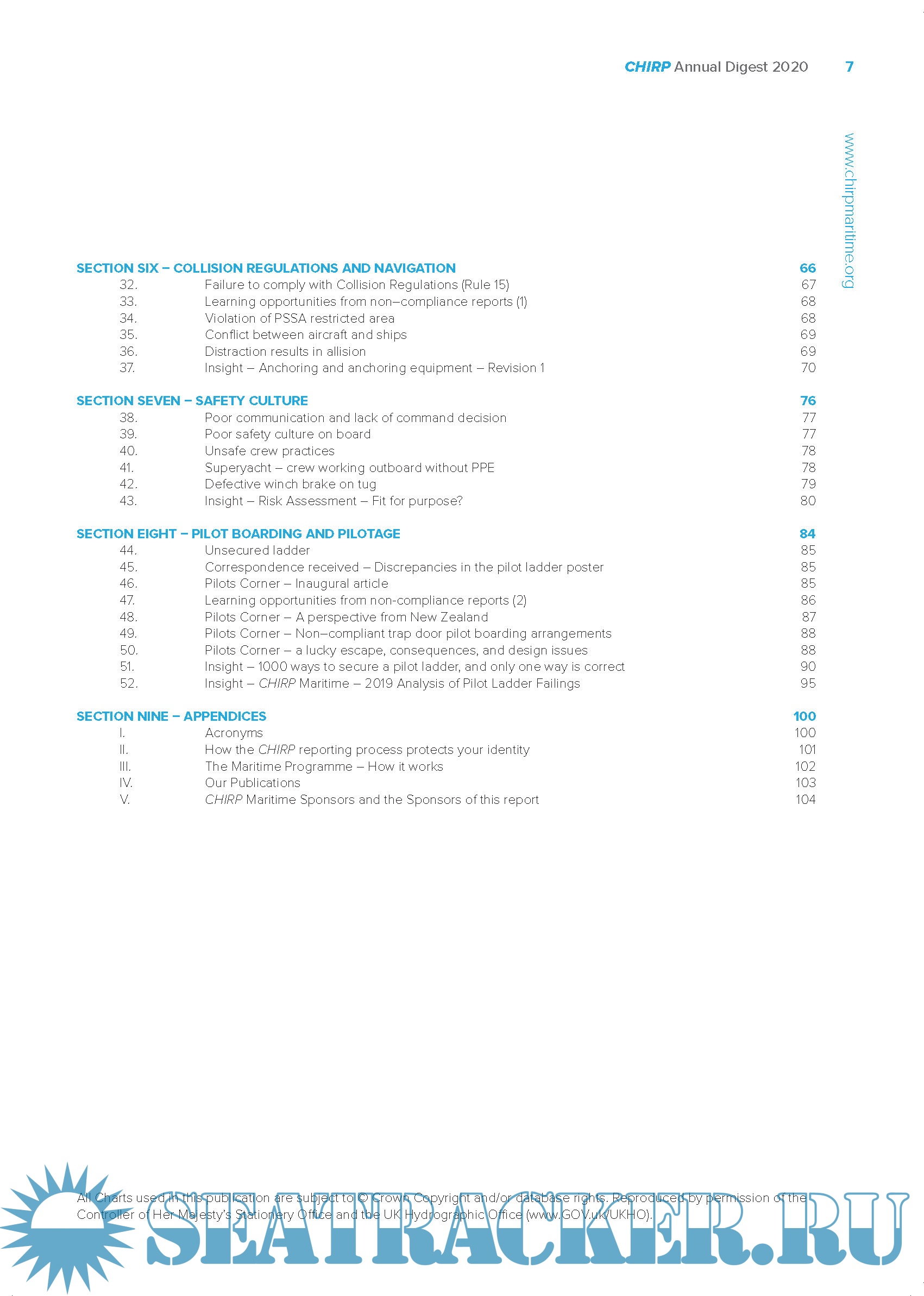 Year: 2021 Language: english Author: CHIRP Maritime Format: PDF Quality: eBook Pages count: 106 Description: This publication contains summaries of all cases published by CHIRP (Confidential Human Factors Incident Reporting Programme) during 2020. CHIRP Maritime aims to improve maritime safety by providing an independent and confidential reporting system for all individuals employed in or associated with the industry, analysing data and identifying safety trends and informing the community of safety related reports and trends. The Digest categorises incidents according to human factors, deck safety, engineering, technological, environmental, pilotage, COLREGs/navigation, safety culture and health and etc.