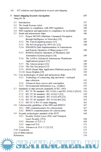 Coverage includes the following topics: the global trade facilitation regulatory framework and the role of ICT; maritime ports and cybersecurity; e-navigation and shore-based monitoring systems; maritime transportation along the Northern Sea Route; smart shipping beyond e-navigation; maritime communications; emerging radio communication technologies in the maritime domain; a data-driven methodology for maritime patterns of life discovery; real-time information with its technology; digital supply chain and port information modelling (PIM); ICT innovation in port-hinterland transport services; decarbonisation technologies in shipping and the question of transition fuels; and finally the advent of shore-based navigation: from vessel traffic services (VTS) to e-navigation maritime service portfolio (MSP).