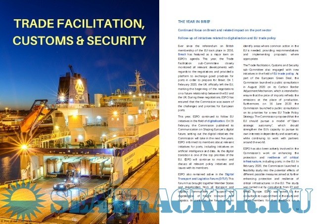 Year: 2020 Language: english Author: Jacob Armstrong and Céline Lefort Genre: Manual Publisher: ESPO Format: PDF Quality: eBook Pages count: 50 Description: We began the year looking forward, in particular, to the challenge of the European Green Deal for ports. At that time, we re-emphasised our sector’s unequivocal support for decarbonisation and the energy transition, a commitment we had previously reflected in our priorities for the five years from 2019 to 2024 when we launched What ports do for Europe, What Europe can do for ports in Livorno in May 2019. In addition to the challenge for ports of the European Green Deal, many members of ESPO also looked ahead to the challenge of Brexit and began to prepare for the reintroduction of border controls in their ports which the Single Market had removed in 1992. These were big enough challenges in themselves and we could not have foreseen that they would have been rapidly dwarfed by the Covid-19 pandemic in just a few months. Many lives have been lost throughout Europe, businesses and industries have been decimated and many people have lost their jobs. Supply chains have been challenged but have held firm and the goods essential for our daily lives have continued to flow through our ports even if the passenger side of our industry has hugely diminished for the time being. So many of the things we had thought we could take for granted have been undermined and our sector, like all others, is in the middle of a period of unprecedented challenge and change. Navigating in such turbulent times requires a lodestar and the European Green Deal continues to provide the over-arching priority for ESPO. Finding the way forward in turbulent times also requires a unity of purpose and the past year has demonstrated the importance of ESPO both as a voice for Europe’s port sector and also as a forum for our members to cooperate and learn from each other as we face into shared challenges. ESPO’s success as the representative body of Europe’s port sector depends on the work of our Committees and I would like to thank all of the port and port association executives who give their time and expertise to attend meetings and contribute to this important work. It is particularly important that our Committees are representative of ports throughout Europe; from the Baltic to the North Sea and along the English Channel; to the Atlantic seaboard; into the Mediterranean and all the way to the Black Sea. I would again urge all ports and port associations to encourage executives and officials to participate in the work of ESPO so that the perspectives of all ports in the EU are understood and reflected in our work. The response of our committees to having to do their work remotely for much of the past year has, if anything, cemented the unity of purpose of our organisation and I am very pleased to have seen such a high continued level of participation by members in ESPO’s work.