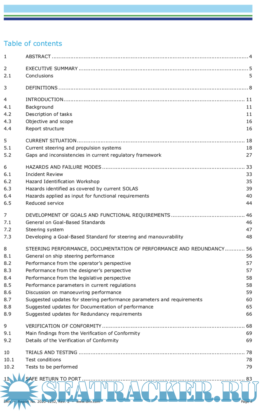 Year: 2021 Language: english Author: Anna Kringlen Ervik Genre: Reference book Publisher: EMSA DNV Edition: 1 Format: PDF Quality: eBook Pages count: 305 Description: This report presents the findings from the STEERSAFE project, conducted by DNV for the European Maritime Safety Agency (EMSA). The STEERSAFE project aims to provide a holistic analysis of the SOLAS regulations and associated circulars related to steering and manoeuvrability, provide a consistent update of these and to propose practical and meaningful performance parameters in normal service and in failure mode. This report consolidates the previously performed STEERSAFE tasks and presents the findings from the final phase of the STEERSAFE project.