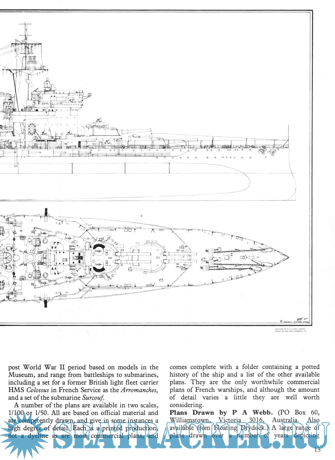 Description: "Moving from sources of information through the construction of hull, deck and superstructure, to gun mountings and deck fittings. A chapter by an expert warship modeller covers each of these general topics, followed by sections specifically concerning miniature models, powerplant and radio control, and plastic kits, concluding with a detailed bibliography. Over 120 plans and diagrams, and 150 photos carefully chosen for their reference value."