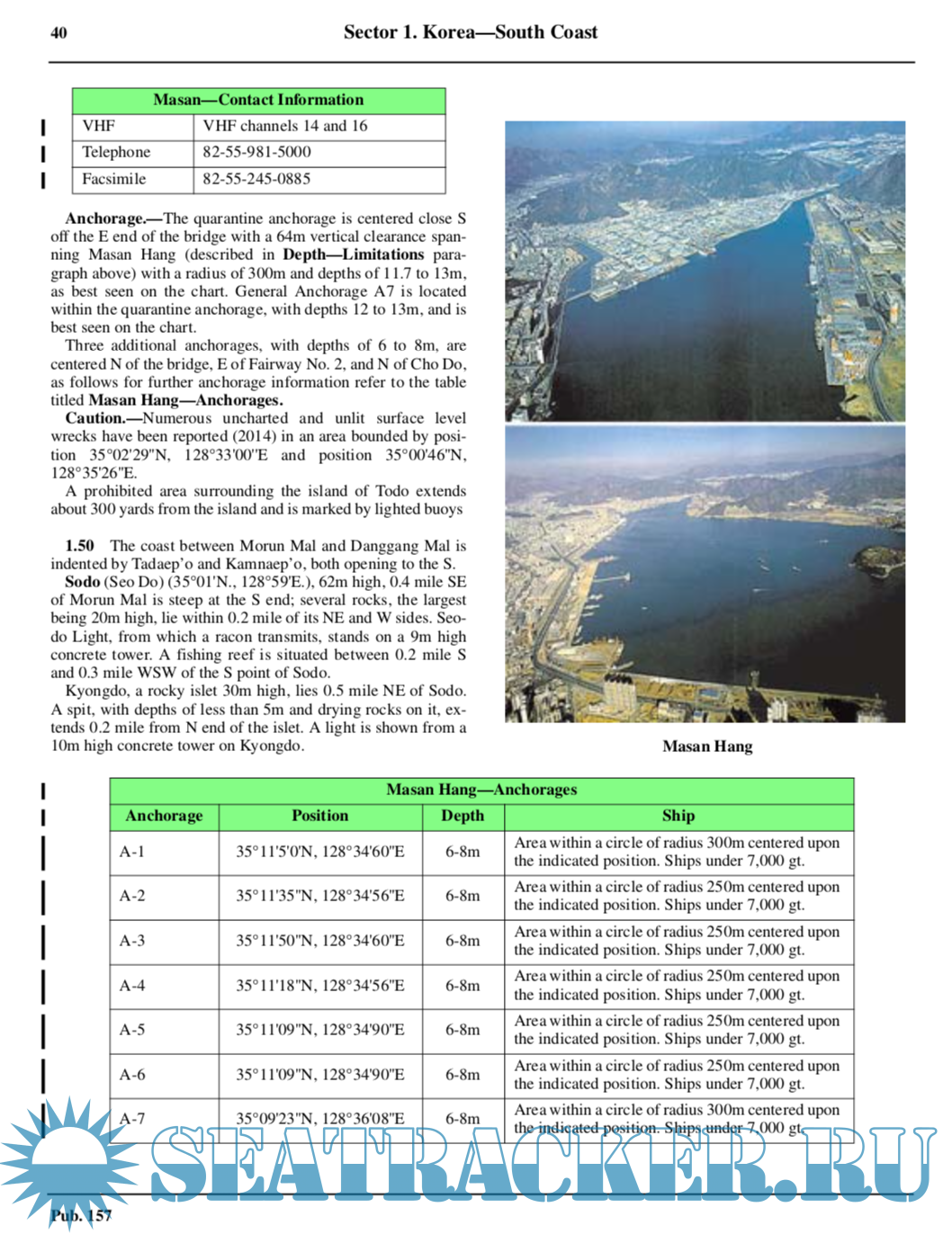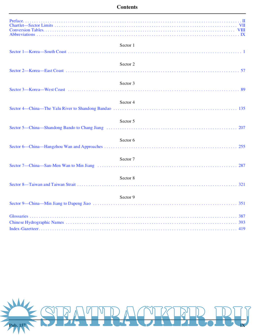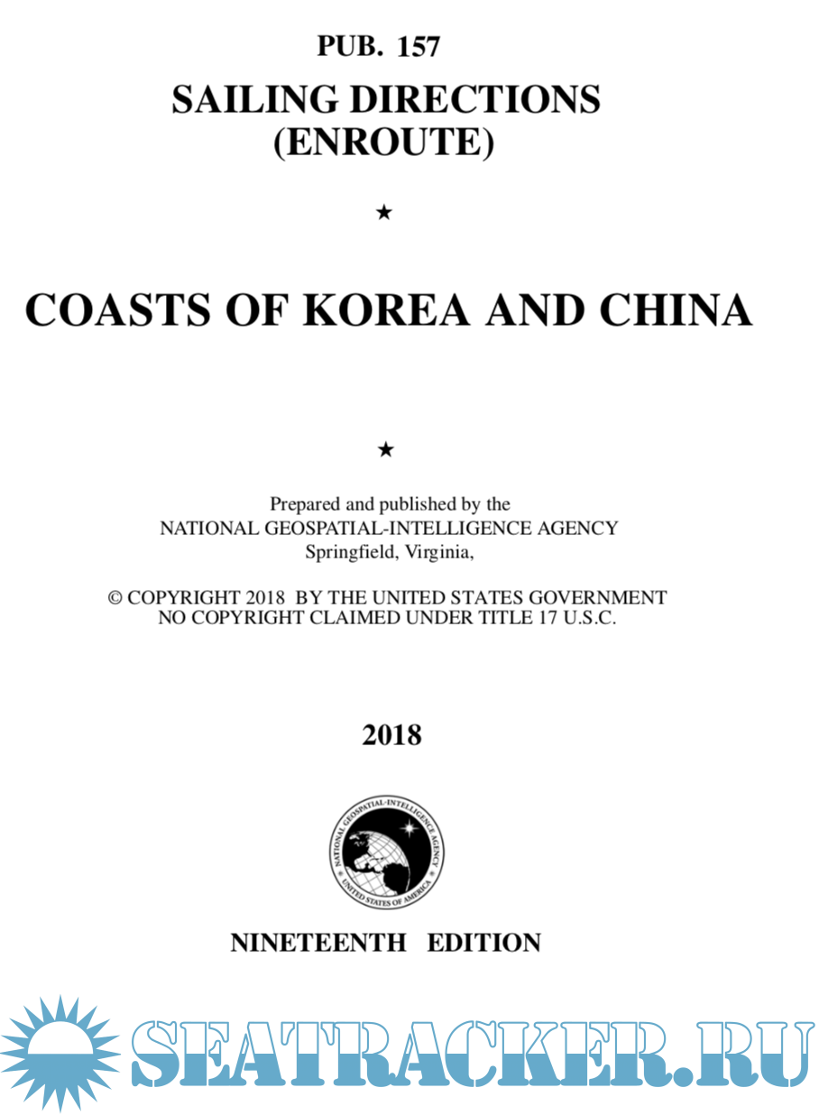 Pub. 157, Sailing Directions (Enroute) Coasts of Korea and China, Nineteenth Edition, 2018, is issued for use in conjunction with Pub. 120, Sailing Directions (Planning Guide) Pacific Ocean and Southeast Asia. Companion volumes are Pubs. 154, 155, 158, and 159.