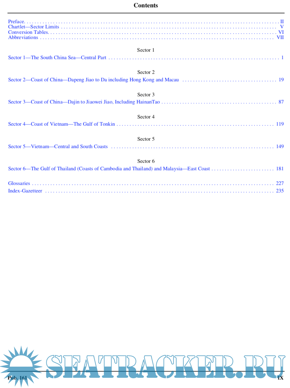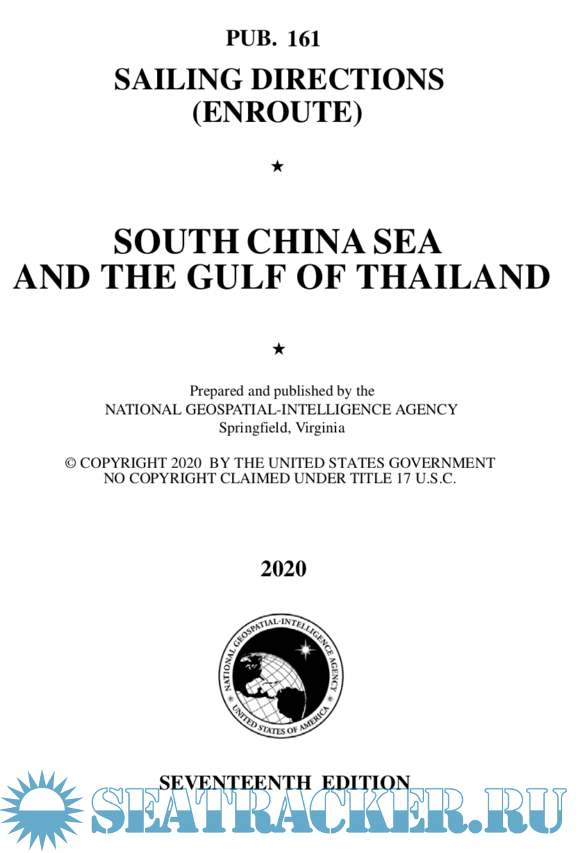 Pub. 161, Sailing Directions (Enroute) South China Sea and the Gulf of Thailand, Seventeenth Edition, 2020, is issued for use in conjunction with Pub. 120, Sailing Directions (Planning Guide) Pacific Ocean and Southeast Asia. Companion volumes are Pubs. 162, 163, and 164.