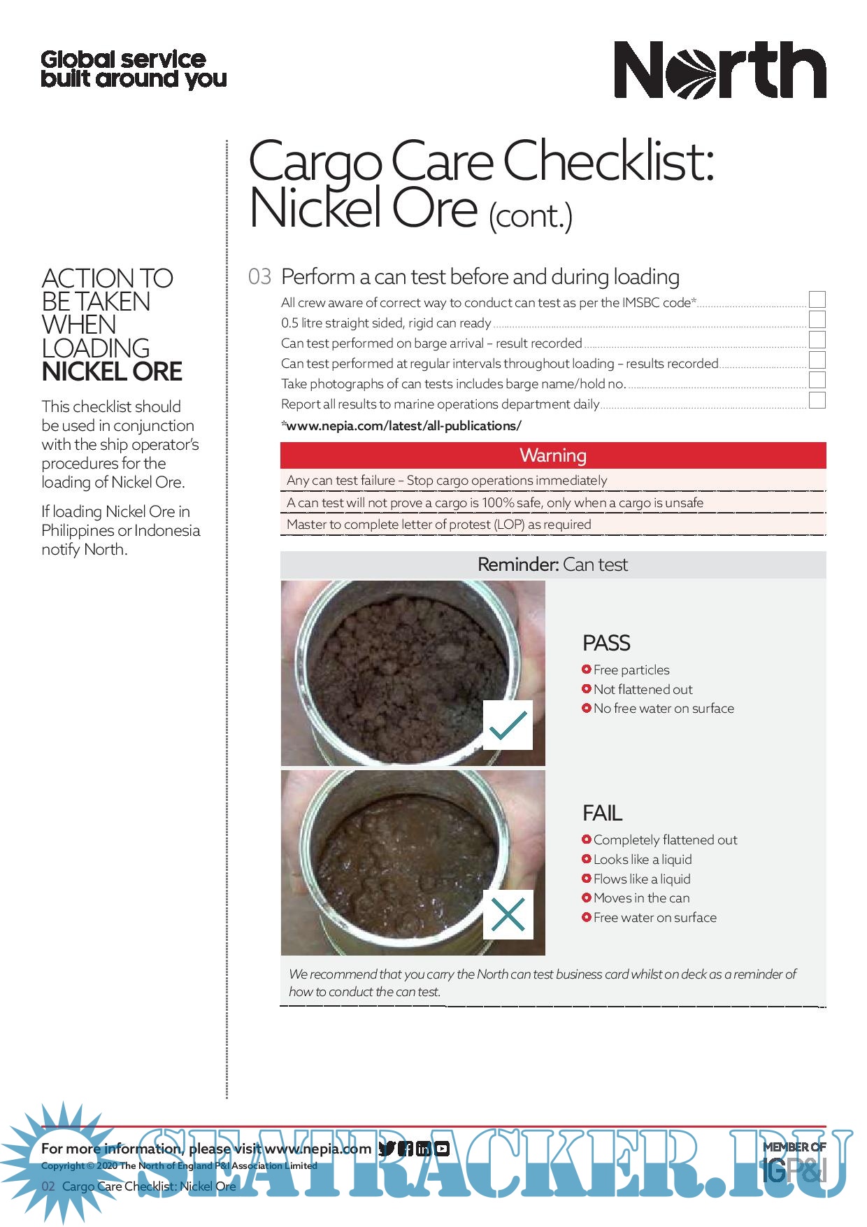 Cargo Care Checklist: Nickel Ore [updated] - NorthStandard [2024, PDF]