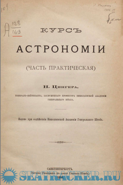 Описание: Курс астрономия (Часть практическая) Николай Яковлевич Цингер (1842—1918) — русский астроном, геодезист и картограф, профессор, член-корреспондент Императорской Санкт-Петербургской Академии Наук (1900), один из руководителей Русского географического общества; генерал-лейтенант. Член Санкт-Петербургского математического общества. Основатель российской геодезической школы.