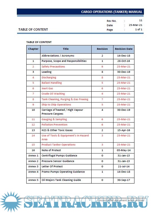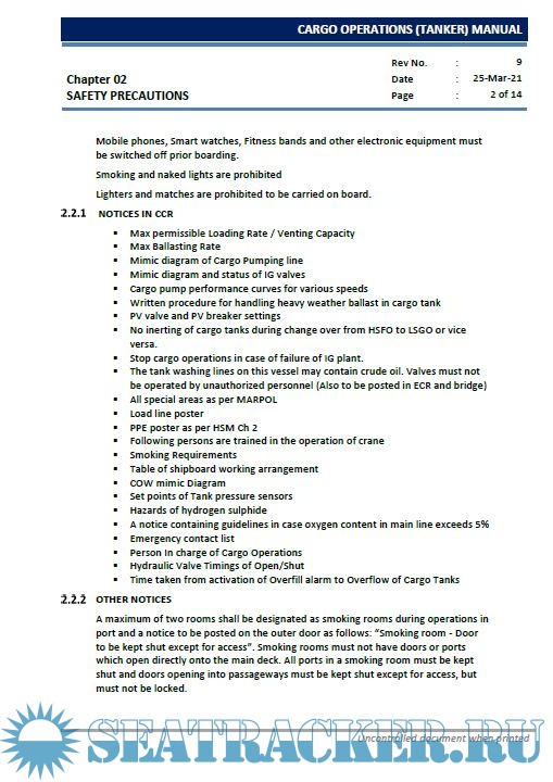 Description: The purpose of this manual is to guide the Master, Officers and crew to load, carry and unload cargoes in a safe and efficient manner. At every stage of the operation of the vessel due consideration must be given to all the rules and regulations of the Classification society, IMO, OCIMF, SOLAS and MARPOL requirements as well as must conform with the various codes and regulations with respect to cargo carriage.