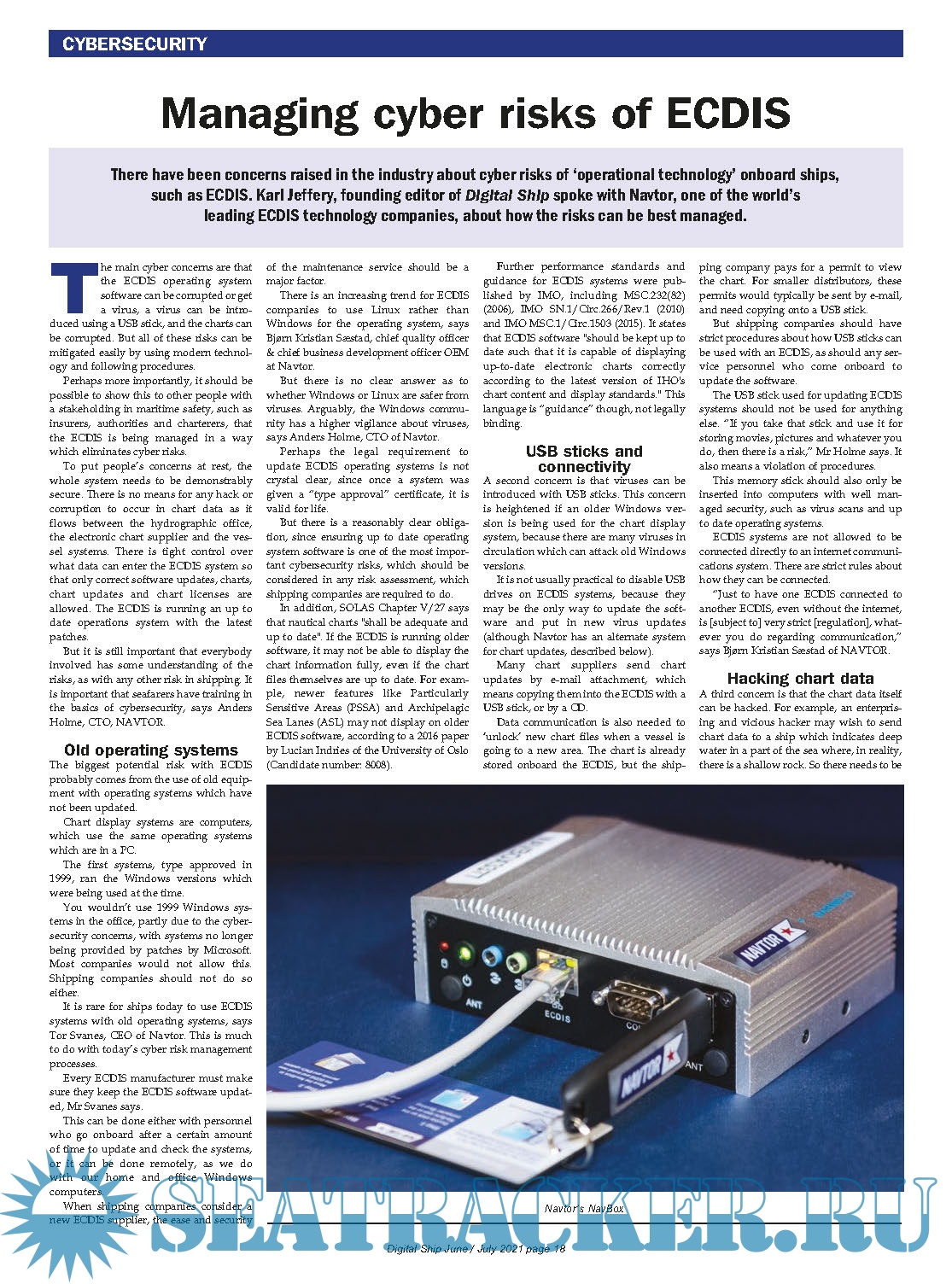 Description: Digital Ship magazine provides the latest information about maritime satellite communications technology, software systems, navigation technology, computer networks, data management and etc.