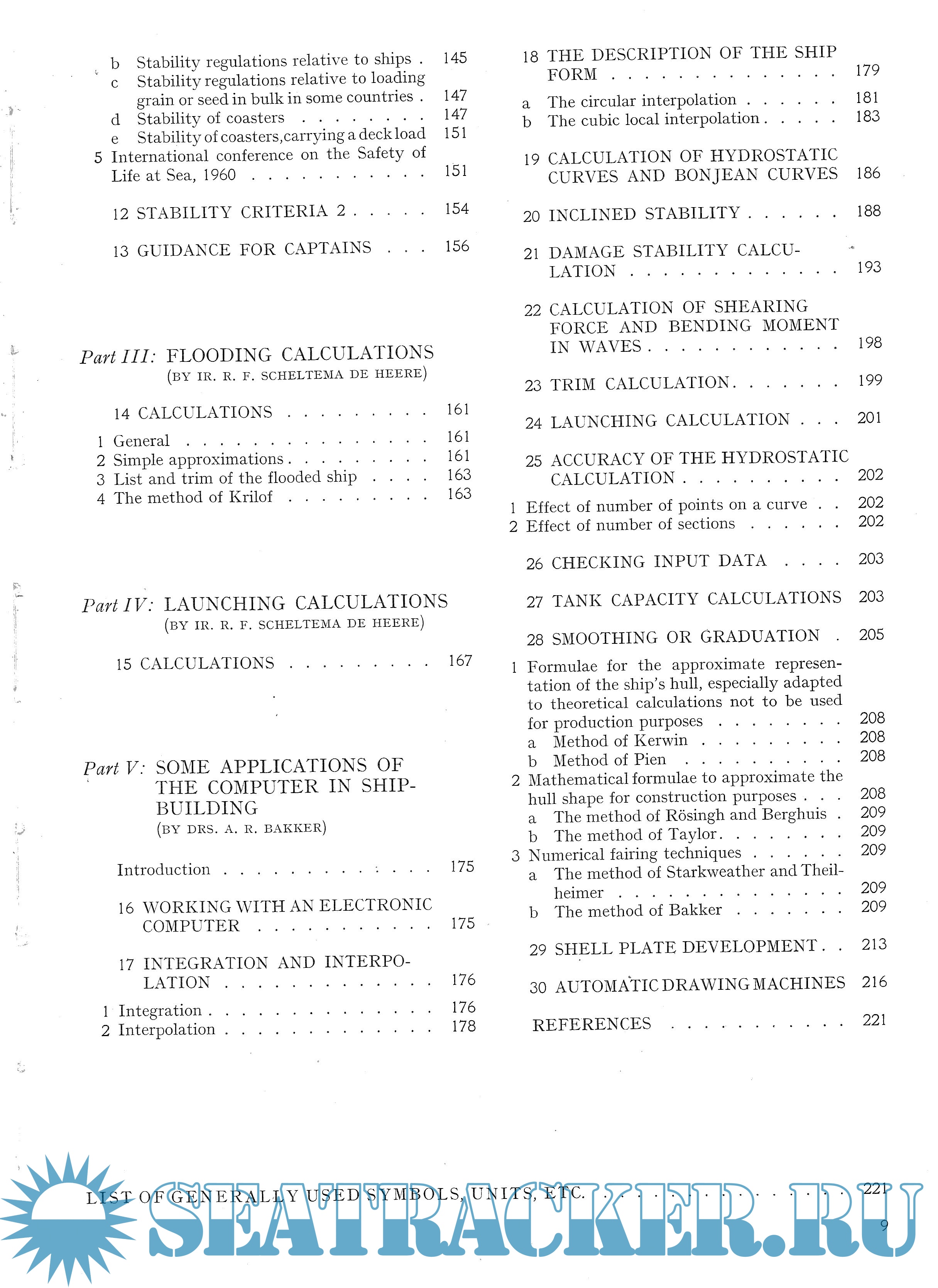 Parts - 1, 2 and 3 are Theory of the ship, Stability of ships, Flooding Calculations, Launching Calculations
