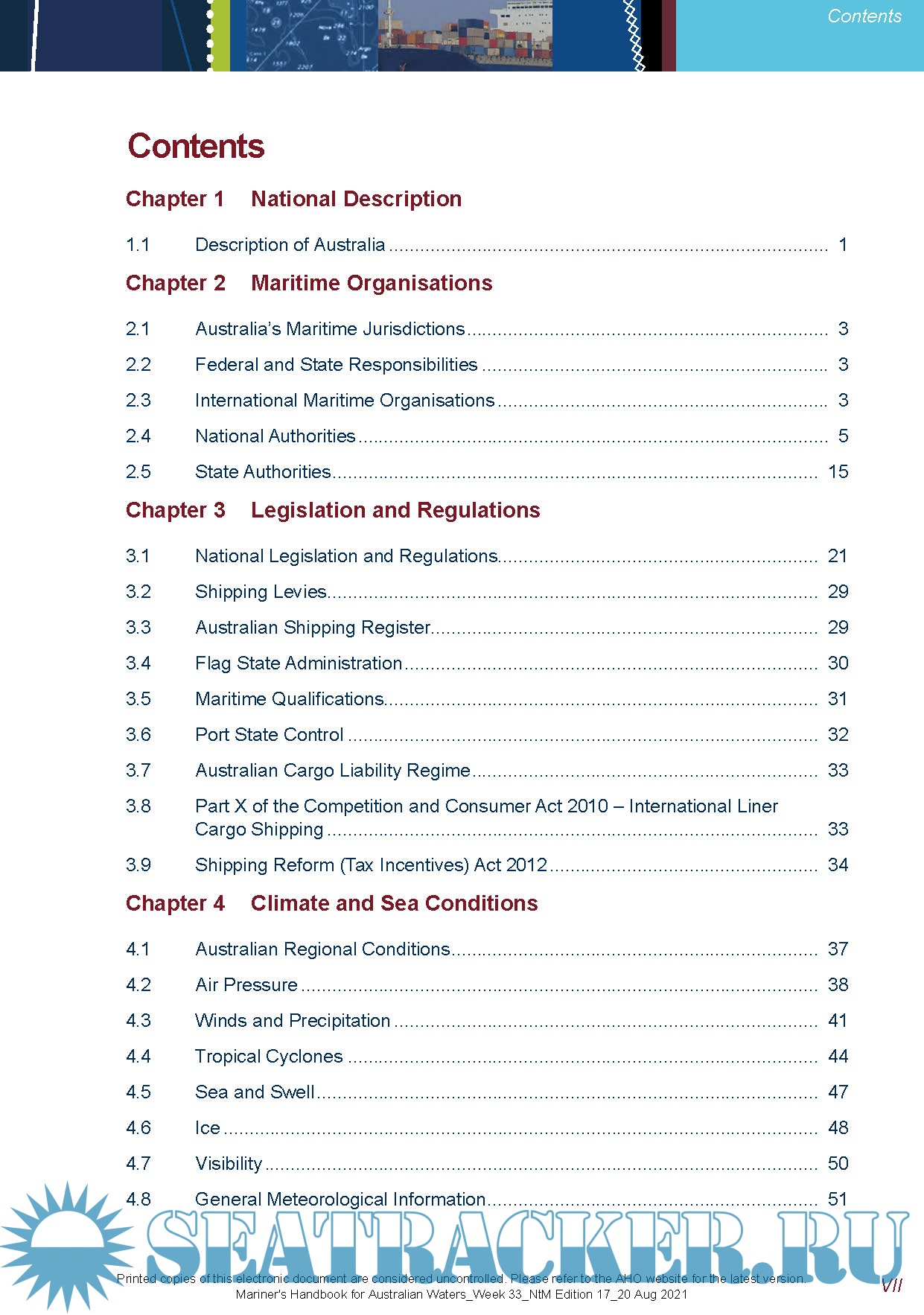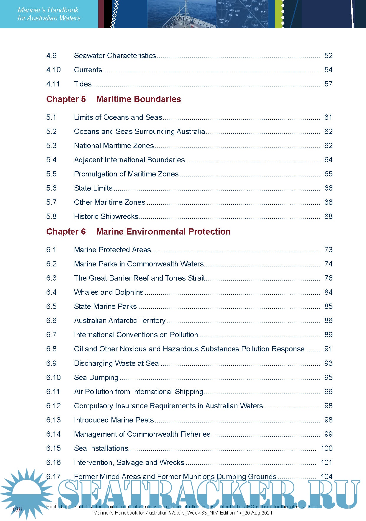 Year: 2019-2021 Language: english Author: Australian Hydrographic Office Genre: Handbook Publisher: Commonwealth of Australia Edition: Reprint ISBN: 978-0-646-1098-0 Format: PDF Quality: eBook Pages count: 324+18 Description: The Mariner’s Handbook for Australian Waters (AHP20) is an official nautical publication providing mariners with important regulatory, procedural and environmental information affecting the planning and conduct of a voyage to or from Australian ports, or within Australian waters. It includes a summary of all relevant information from various Australian government agencies under the cover of one combined reference, with links to further information if required. the Mariner’s Handbook for Australian Waters has been updated to Week 33 NtM Edition 17_20 Aug 2021 The publication includes: -Major Australian maritime legislation and regulations, and responsible agencies -Marine Protected Areas, regulations and responsible agencies -Coastal Pilotage arrangements -Torres Strait and Great Barrier Reef shipping routes, accident and incident reporting -Maritime Safety Information, meteorological broadcasts, Warnings, search and rescue -Ship Reporting Systems - AUSREP and REEFVTS -Maritime security, Customs, biosecurity, quarantine and immigration -Australian trading ports – Pilots, boarding arrangements, arrival and departure notification requirements, VHF Channels and port contact details -Mariners guide to interpreting the accuracy of depth information in Electronic Navigational Charts (ENC) -The regional climatic environment -Key contact information for each relevant government agency and links to further information -Important information relating to the accuracy of charts, zones of confidence and effects of over-scaling in ECDIS : Additional info: Included AHP20 Supplement CH13: Mariner's Guide to Accuracy of Depth Information in ENC. Information regarding the accuracy of depth information in Electronic Navigational Charts (ENC), and how mariners should interpret that information, forms a chapter of the Mariner’s Handbook for Australian Waters. However, this information is also likely to be useful to mariners and maritime training organiZations that do not require the accompanying regulatory and procedural information contained in other chapters. Chapter 13 of the Mariner’s Handbook for Australian Waters has therefore been published as a separate digital supplement. It addresses a number of misconceptions amongst mariners regarding the accuracy of bathymetry within ENC, and the impact that accuracy should have upon route planning and conduct. :