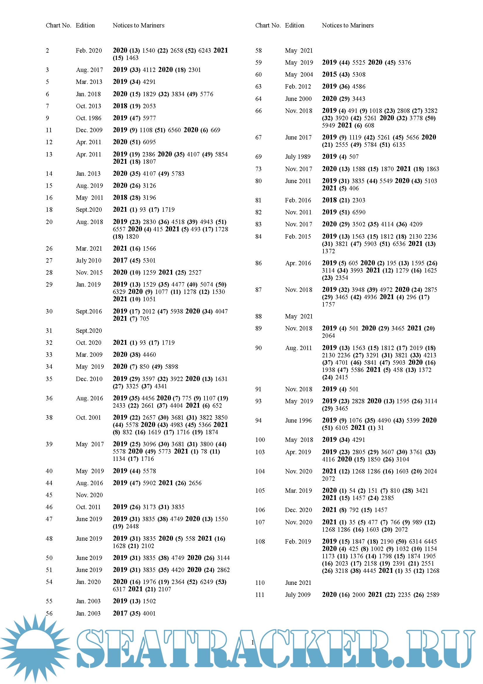 Description: The Cumulative List of ADMIRALTY Notices to Mariners (NP234 A/B) can help you to identify outstanding NMs and audit trails for a particular chart or charts. The list is published annually, with Part A in January and Part B in July.