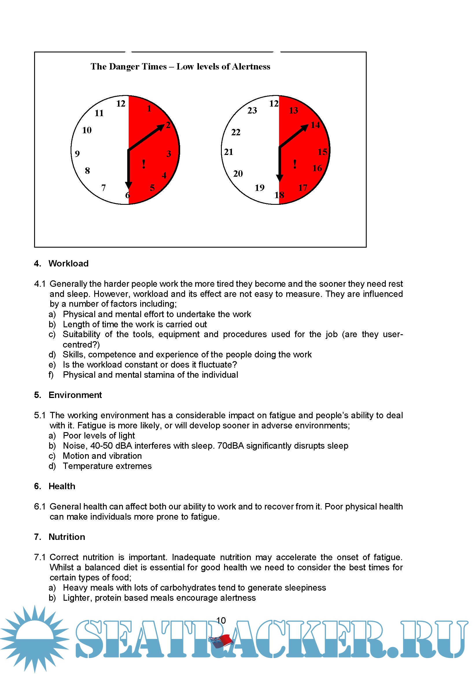 v. Useful sources of additional information about fatigue and fatigue management.