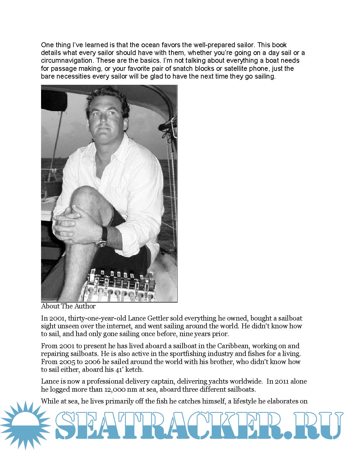 Year: 2011 Language: english Author: Lance Gettler Genre: Practical guide Publisher: Lance Gettler Edition: First ISBN: B006JPBO6E Format: PDF Quality: eBook Pages count: 22 Description: One thing I’ve learned is that the ocean favors the well-prepared sailor. This book details what every sailor should have with them, whether you’re going on a day sail or a circumnavigation. The book also goes into why you need certain gear and what makes some gear better than others. About the Author In 2001, 31-year-old Lance Gettler sold everything he owned, bought a sailboat he’d never seen over the internet and went sailing around the world. He didn’t know how to sail and had only been sailing once before, nine years prior. Lance is now a professional delivery captain, delivering yachts worldwide. From 2005 to 2006, he sailed around the world aboard his 41' ketch with his brother, who didn't know how to sail either. You can read about that in "Ask Me Anything About Sailing Around The World". In 2011 alone, he logged more than 12,000 nm at sea aboard three different sailboats. To the present day, he lives aboard a sailboat in the Caribbean, working on and repairing sailboats.