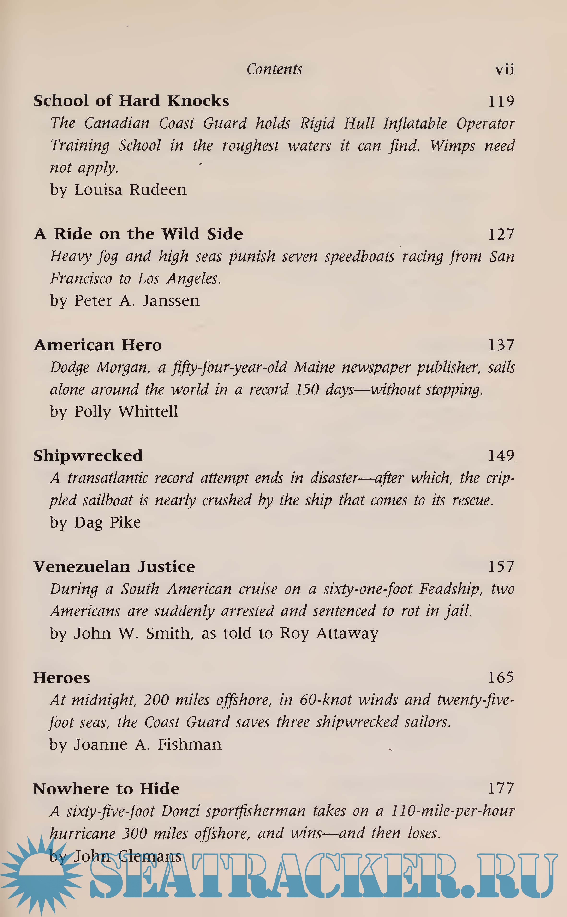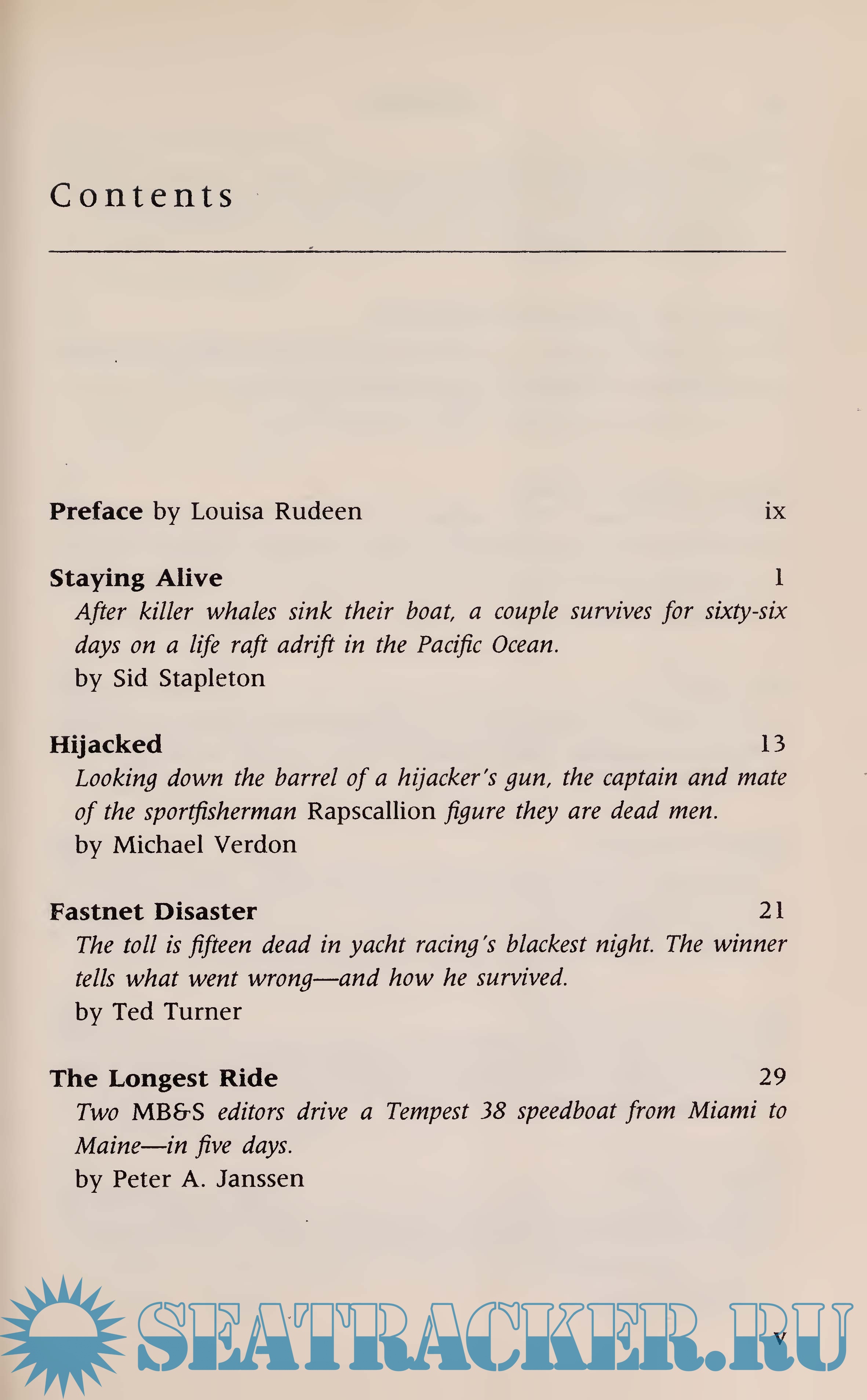 But this book is not about those carefree times. This is an anthology of adventure stories that have run in the magazine over the past two decades true stories that deal with those rare occasions when nature turns from a gentle companion to a wrathful enemy; when the going gets rough and there's no place to hide; when it all comes down to a man and woman against the sea.