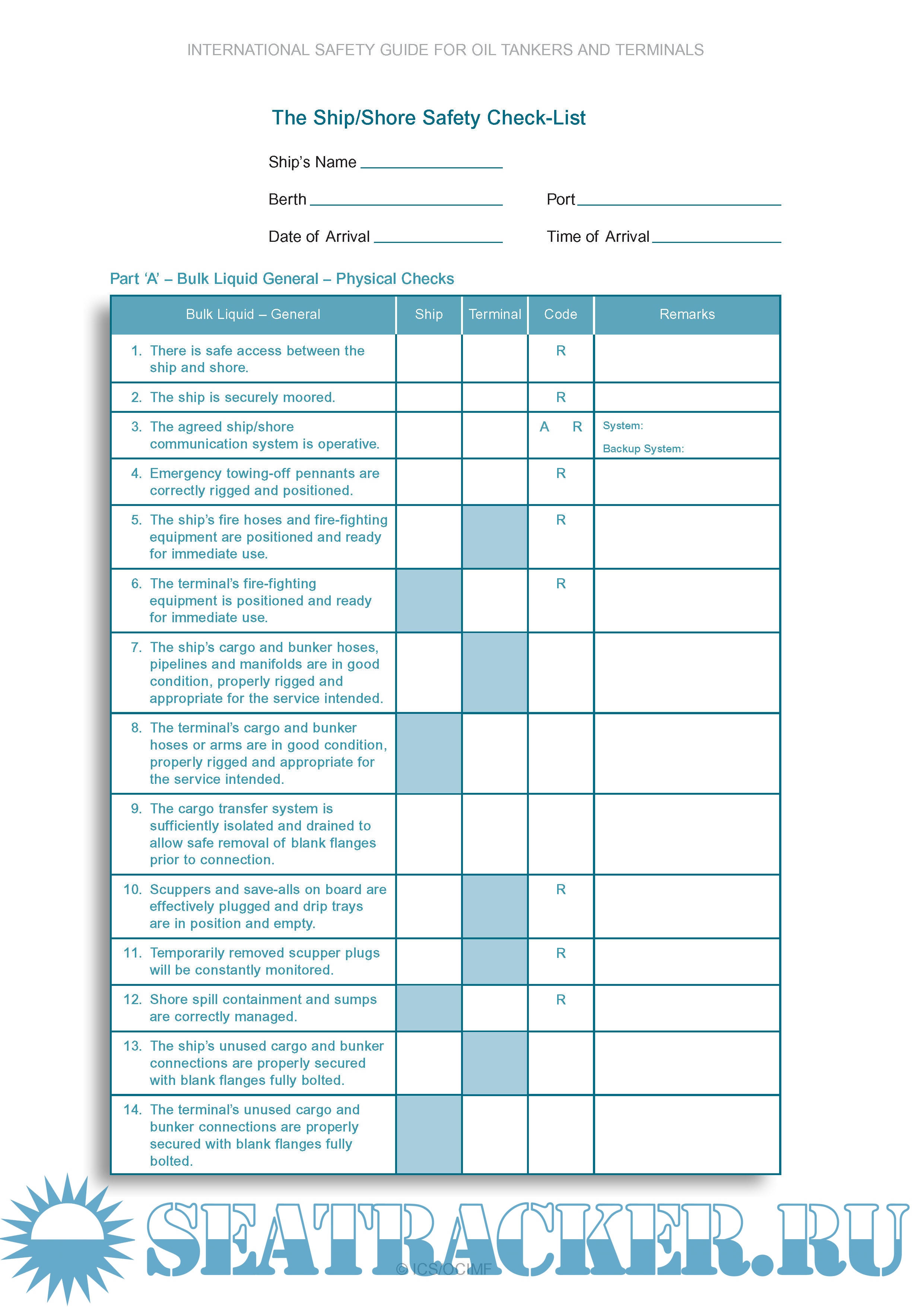 Description: The Ship/Shore Safety and Bunkering Operations Checklists have been completely revised to reflect changes in the understanding of the impact of human factors in their effective use.