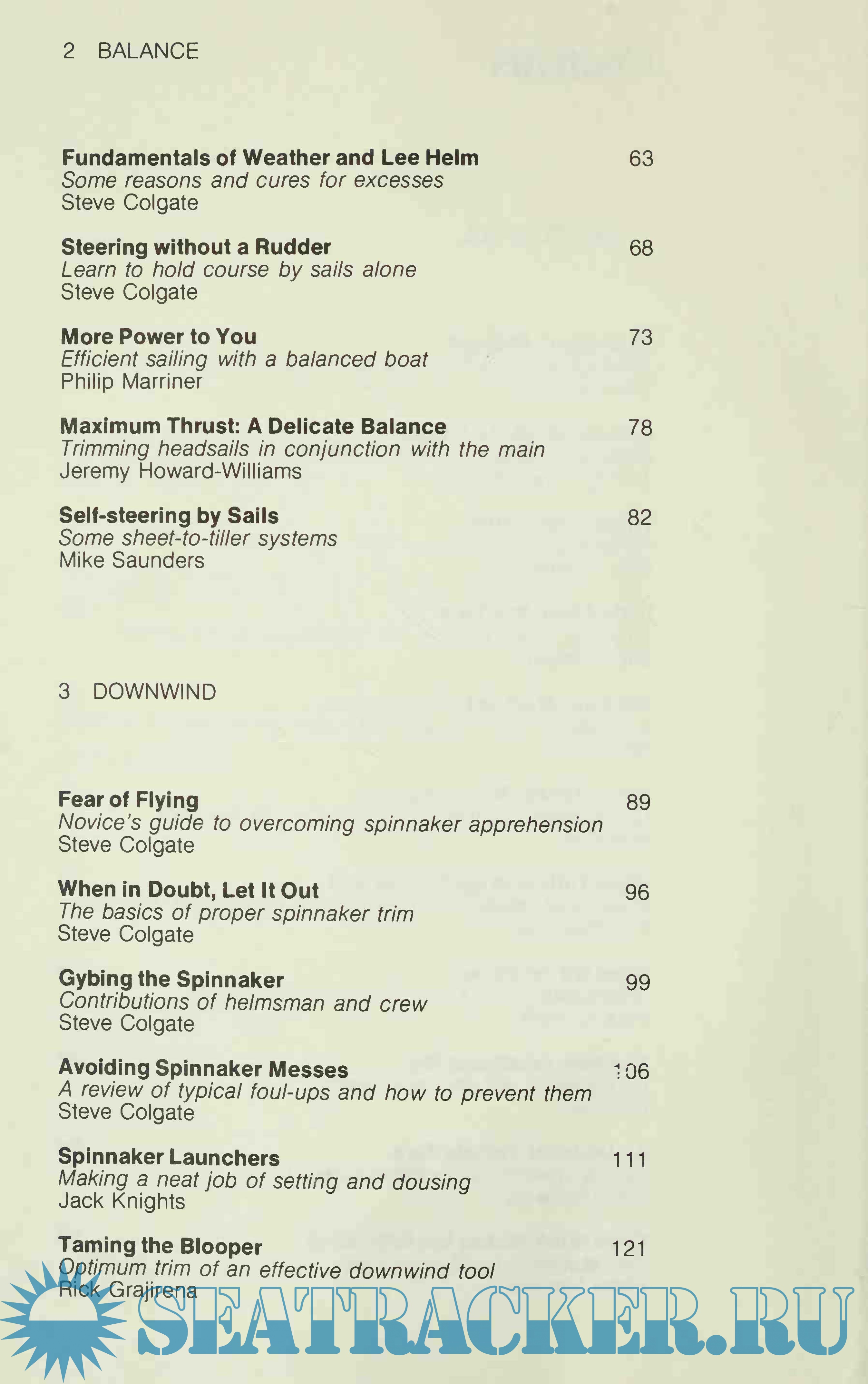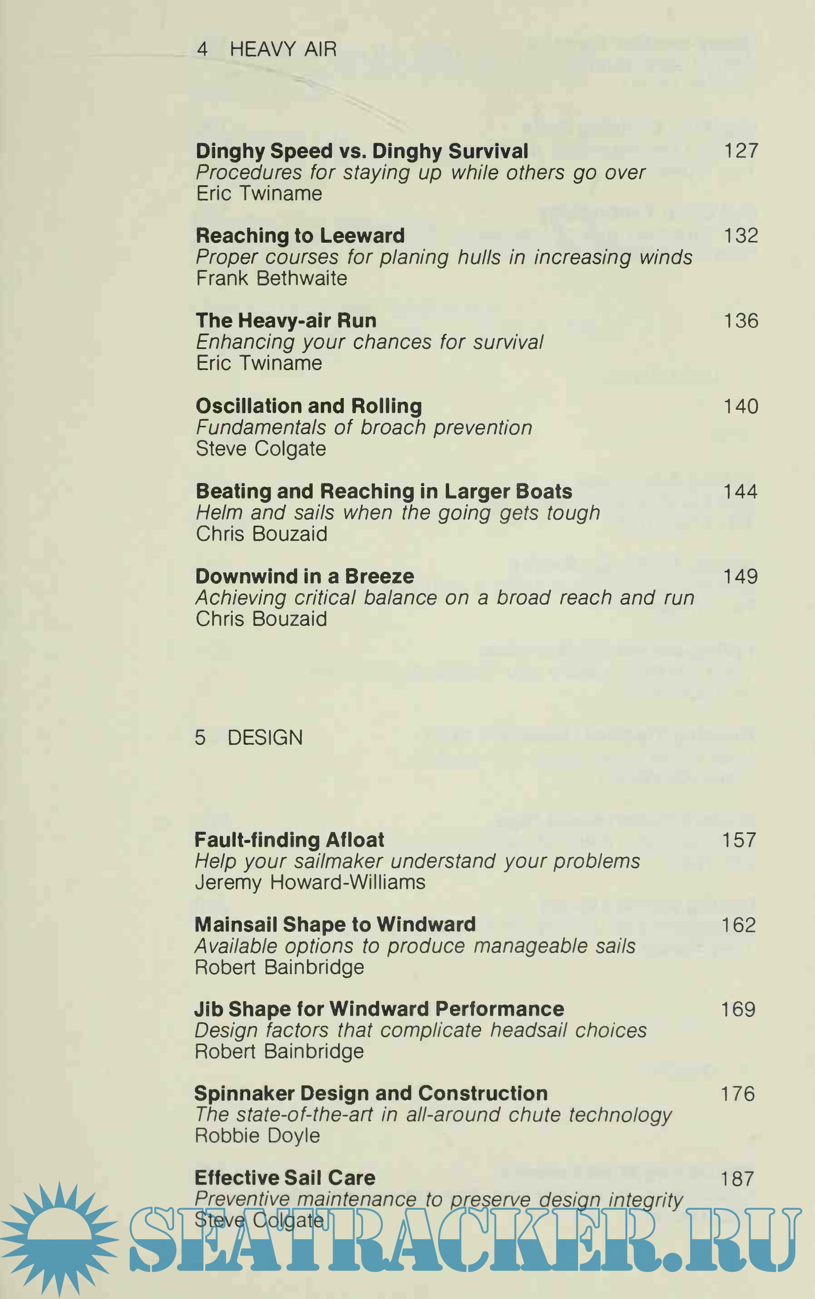 Year: 1979 Language: english Author: Edited by Anne Madden Genre: Guide Publisher: Sail Books, Inc Edition: First ISBN: 0-914814-18-4 Format: PDF & EPUB Quality: Scanned pages Pages count: 294 Description: More SAIL Trim • An all-new anthology of 47 outstanding articles from five years of SAIL Magazine • Fully illustrated with over 200 drawings, photos, and diagrams • Covers shape, balance, downwind sailing, heavy weather, design and maintenance, rigging and deck layout, and aerodynamic theory • Filled with solid ideas and advice for expert Additional info: PDF + EPUB